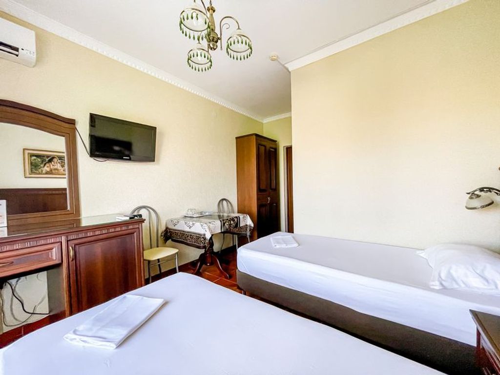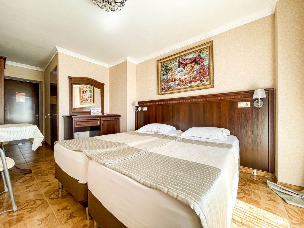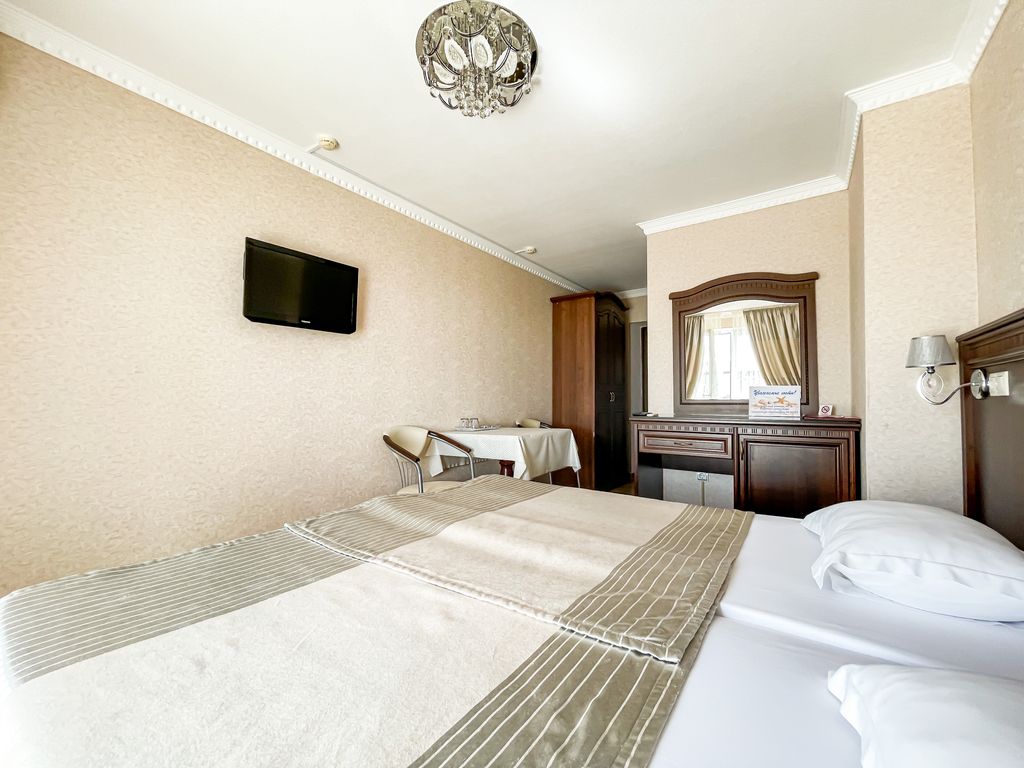 Отель «Анжелина» в Витязево– это 4-этажное здание в современном стиле, расположенное на первой линии курортной зоны, в пяти минутах (400 метров до пляжа) ходьбы от белоснежного песчаного пляжа с экологическим чистым воздухом. К вашим ежедневным услугам и к полному распоряжению: бассейн с водопадом, джакузи, детским отделением, вечерней подсветкой и лежаками вокруг него; шезлонги; площадка и беседка для отдыха на открытом воздухе; летняя веранда; детская площадка; детская комната; караоке бар; бильярд; аэрохоккей; теннисный стол; автостоянка; WI-FI интернет. Питание «Шведский стол» Завтрак 08:00-10:00 | Обед 13:00-15:00 | Ужин 18:00-20:00 Первые и вторые блюда, гарниры Гарниры,мясные, рыбные и молочные блюда Салаты, нарезки, фрукты, выпечка Соки и горячие напитки Безалкогольные напитки Детям до 2 лет включительно принимаются и питаются бесплатно. Детям от 3 до 7 лет питание предоставляется со скидкой 50% Администрация отеля оставляет за собой право перейти на комплексное питание при з