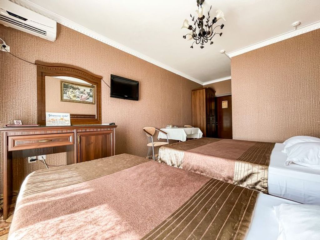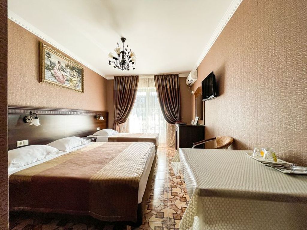 Отель «Анжелина» в Витязево– это 4-этажное здание в современном стиле, расположенное на первой линии курортной зоны, в пяти минутах (400 метров до пляжа) ходьбы от белоснежного песчаного пляжа с экологическим чистым воздухом. К вашим ежедневным услугам и к полному распоряжению: бассейн с водопадом, джакузи, детским отделением, вечерней подсветкой и лежаками вокруг него; шезлонги; площадка и беседка для отдыха на открытом воздухе; летняя веранда; детская площадка; детская комната; караоке бар; бильярд; аэрохоккей; теннисный стол; автостоянка; WI-FI интернет. Питание «Шведский стол» Завтрак 08:00-10:00 | Обед 13:00-15:00 | Ужин 18:00-20:00 Первые и вторые блюда, гарниры Гарниры,мясные, рыбные и молочные блюда Салаты, нарезки, фрукты, выпечка Соки и горячие напитки Безалкогольные напитки Детям до 2 лет включительно принимаются и питаются бесплатно. Детям от 3 до 7 лет питание предоставляется со скидкой 50% Администрация отеля оставляет за собой право перейти на комплексное питание при з