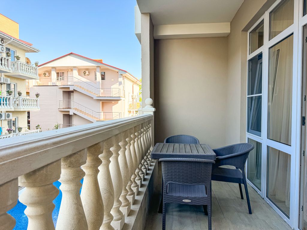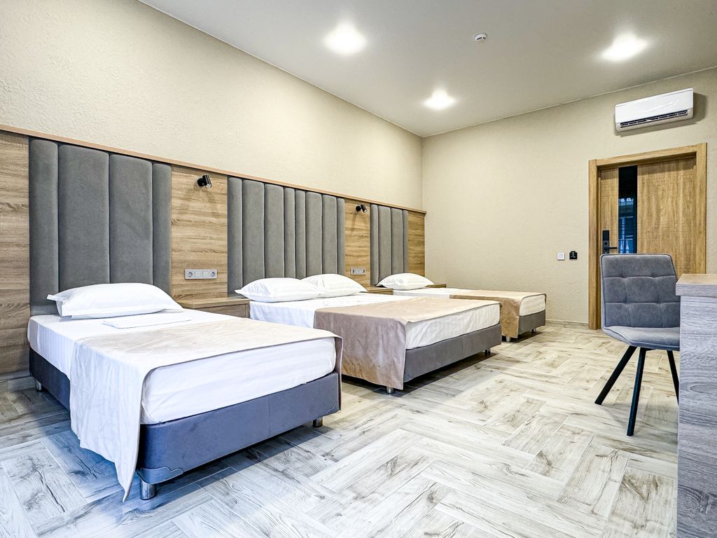Отель «Анжелина» в Витязево– это 4-этажное здание в современном стиле, расположенное на первой линии курортной зоны, в пяти минутах (400 метров до пляжа) ходьбы от белоснежного песчаного пляжа с экологическим чистым воздухом. К вашим ежедневным услугам и к полному распоряжению: бассейн с водопадом, джакузи, детским отделением, вечерней подсветкой и лежаками вокруг него; шезлонги; площадка и беседка для отдыха на открытом воздухе; летняя веранда; детская площадка; детская комната; караоке бар; бильярд; аэрохоккей; теннисный стол; автостоянка; WI-FI интернет. Питание «Шведский стол» Завтрак 08:00-10:00 | Обед 13:00-15:00 | Ужин 18:00-20:00 Первые и вторые блюда, гарниры Гарниры,мясные, рыбные и молочные блюда Салаты, нарезки, фрукты, выпечка Соки и горячие напитки Безалкогольные напитки Детям до 2 лет включительно принимаются и питаются бесплатно. Детям от 3 до 7 лет питание предоставляется со скидкой 50% Администрация отеля оставляет за собой право перейти на комплексное питание при з