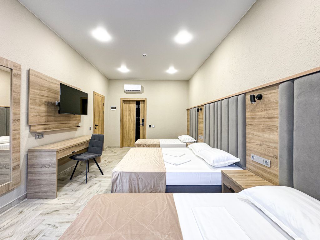 Отель «Анжелина» в Витязево– это 4-этажное здание в современном стиле, расположенное на первой линии курортной зоны, в пяти минутах (400 метров до пляжа) ходьбы от белоснежного песчаного пляжа с экологическим чистым воздухом. К вашим ежедневным услугам и к полному распоряжению: бассейн с водопадом, джакузи, детским отделением, вечерней подсветкой и лежаками вокруг него; шезлонги; площадка и беседка для отдыха на открытом воздухе; летняя веранда; детская площадка; детская комната; караоке бар; бильярд; аэрохоккей; теннисный стол; автостоянка; WI-FI интернет. Питание «Шведский стол» Завтрак 08:00-10:00 | Обед 13:00-15:00 | Ужин 18:00-20:00 Первые и вторые блюда, гарниры Гарниры,мясные, рыбные и молочные блюда Салаты, нарезки, фрукты, выпечка Соки и горячие напитки Безалкогольные напитки Детям до 2 лет включительно принимаются и питаются бесплатно. Детям от 3 до 7 лет питание предоставляется со скидкой 50% Администрация отеля оставляет за собой право перейти на комплексное питание при з