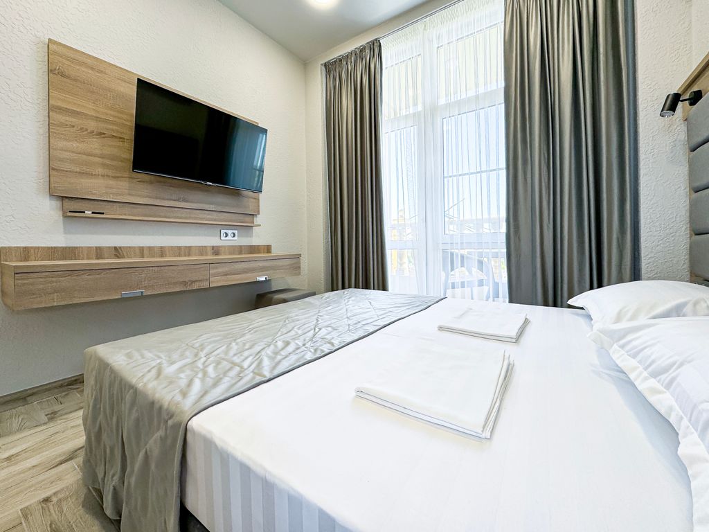 Отель «Анжелина» в Витязево– это 4-этажное здание в современном стиле, расположенное на первой линии курортной зоны, в пяти минутах (400 метров до пляжа) ходьбы от белоснежного песчаного пляжа с экологическим чистым воздухом. К вашим ежедневным услугам и к полному распоряжению: бассейн с водопадом, джакузи, детским отделением, вечерней подсветкой и лежаками вокруг него; шезлонги; площадка и беседка для отдыха на открытом воздухе; летняя веранда; детская площадка; детская комната; караоке бар; бильярд; аэрохоккей; теннисный стол; автостоянка; WI-FI интернет. Питание «Шведский стол» Завтрак 08:00-10:00 | Обед 13:00-15:00 | Ужин 18:00-20:00 Первые и вторые блюда, гарниры Гарниры,мясные, рыбные и молочные блюда Салаты, нарезки, фрукты, выпечка Соки и горячие напитки Безалкогольные напитки Детям до 2 лет включительно принимаются и питаются бесплатно. Детям от 3 до 7 лет питание предоставляется со скидкой 50% Администрация отеля оставляет за собой право перейти на комплексное питание при з