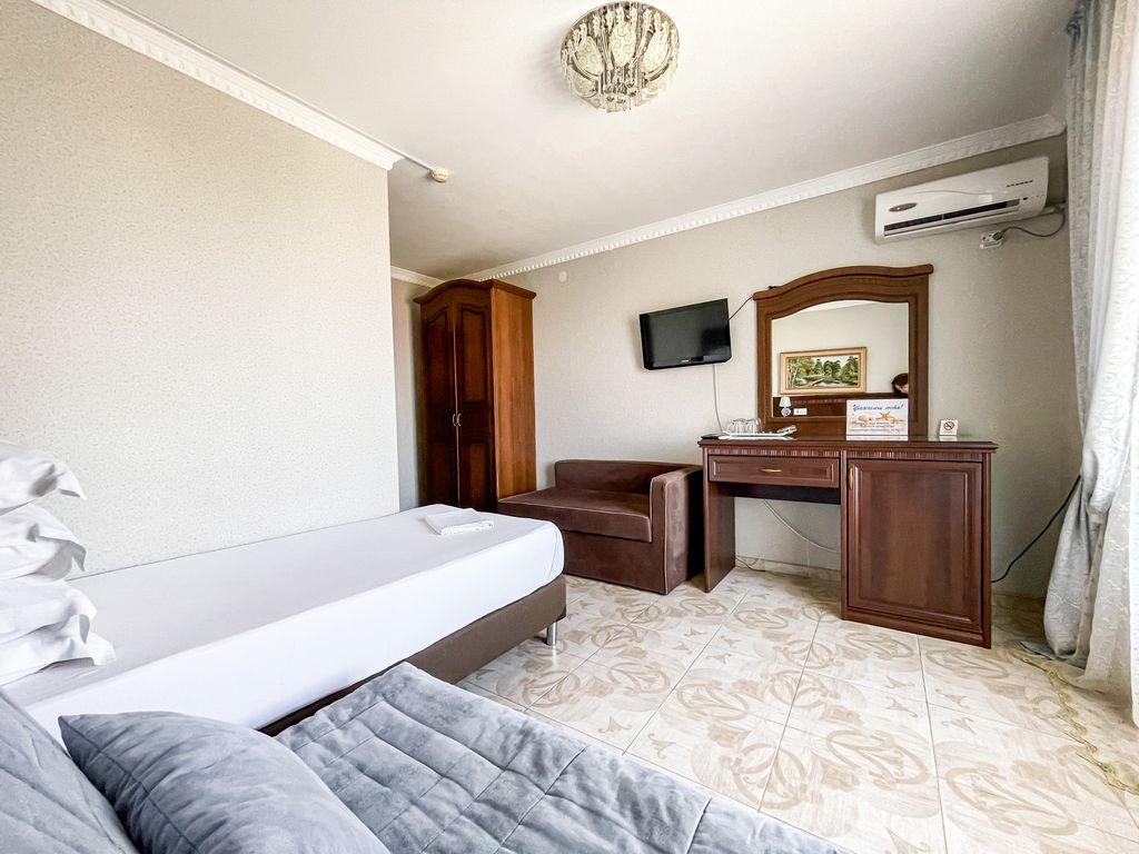 Отель «Анжелина» в Витязево– это 4-этажное здание в современном стиле, расположенное на первой линии курортной зоны, в пяти минутах (400 метров до пляжа) ходьбы от белоснежного песчаного пляжа с экологическим чистым воздухом. К вашим ежедневным услугам и к полному распоряжению: бассейн с водопадом, джакузи, детским отделением, вечерней подсветкой и лежаками вокруг него; шезлонги; площадка и беседка для отдыха на открытом воздухе; летняя веранда; детская площадка; детская комната; караоке бар; бильярд; аэрохоккей; теннисный стол; автостоянка; WI-FI интернет. Питание «Шведский стол» Завтрак 08:00-10:00 | Обед 13:00-15:00 | Ужин 18:00-20:00 Первые и вторые блюда, гарниры Гарниры,мясные, рыбные и молочные блюда Салаты, нарезки, фрукты, выпечка Соки и горячие напитки Безалкогольные напитки Детям до 2 лет включительно принимаются и питаются бесплатно. Детям от 3 до 7 лет питание предоставляется со скидкой 50% Администрация отеля оставляет за собой право перейти на комплексное питание при з