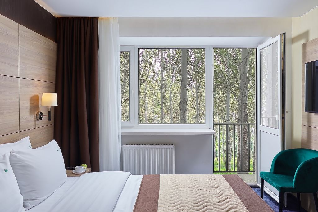 Отель работает по системе «всё включено». Корпус №2 — главный, где находится вся инфраструктура отеля. Корпуса №3, 4, 5 — отдельно стоящие корпуса. Заезд с 17:00. Выезд до 14:00. В стоимость включено: Завтрак (08:00–11:00), Обед (12:30–15:00), Ужин (19:00–22:00). 3-разовое питание «шведский стол», пиво и шампанское подаётся с 9:00. Крепкие алкогольные напитки во время обеда и ужина. (пиво, вино, шампанское, водка) Безалкогольные напитки, снеки и фрукты в ресторане «Вдохновение» с 11:00 до 20:00. Посещение wellness-центра. Анимационные мероприятия. Spa-центр: Посещение соляной пещеры возможно по предварительной записи. Тренажёрный зал. Спортивные мероприятия: Прокат спортивного инвентаря (самокаты, велосипеды, ролики). Бильярд с 13:00 до 22:00. Настольный теннис. Волейбольная площадка, поле для мини-футбола. Детская комната. Посещение game-zone. Детская площадка; Батут «Миньон» (в летнее время); Фермерский дворик; Прокат утюга и гладильной доски; Парковка.