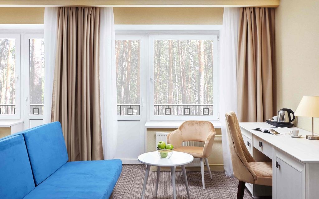Отель работает по системе «всё включено». Корпус №2 — главный, где находится вся инфраструктура отеля. Корпуса №3, 4, 5 — отдельно стоящие корпуса. Заезд с 17:00. Выезд до 14:00. В стоимость включено: Завтрак (08:00–11:00), Обед (12:30–15:00), Ужин (19:00–22:00). 3-разовое питание «шведский стол», пиво и шампанское подаётся с 9:00. Крепкие алкогольные напитки во время обеда и ужина. (пиво, вино, шампанское, водка) Безалкогольные напитки, снеки и фрукты в ресторане «Вдохновение» с 11:00 до 20:00. Посещение wellness-центра. Анимационные мероприятия. Spa-центр: Посещение соляной пещеры возможно по предварительной записи. Тренажёрный зал. Спортивные мероприятия: Прокат спортивного инвентаря (самокаты, велосипеды, ролики). Бильярд с 13:00 до 22:00. Настольный теннис. Волейбольная площадка, поле для мини-футбола. Детская комната. Посещение game-zone. Детская площадка; Батут «Миньон» (в летнее время); Фермерский дворик; Прокат утюга и гладильной доски; Парковка.