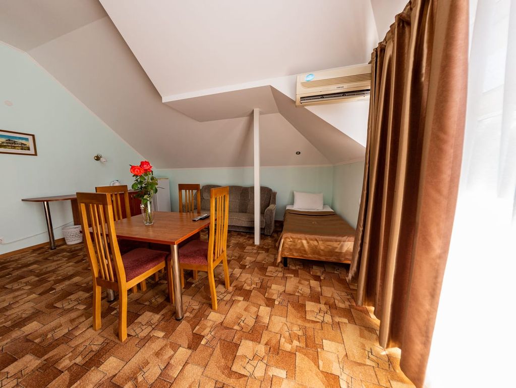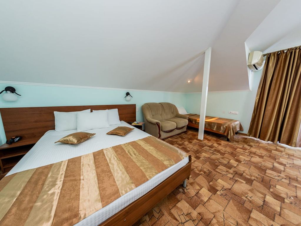 Мы предлагаем вам номера следующих видов: Для 2-4 человек – 2-комнатный или его улучшенный вариант. Для больших семей – 3-комнатный семейный с двумя спальнями и гостиной.Каждый номер в нашем отеле в Анапе соответствует всем нормативам и требованиям. Один ребенок в возрасте до 3 лет (включительно) может проживать бесплатно на дополнительном месте. Вы можете воспользоваться следующими услугами без дополнительной платы: Лежаки и бассейн; Настольный теннис. Детская кроватка для детей до 3-х лет; Анимация для детей; Утюг и гладильная доска; Детская площадка и мангальная зона; Парковка (количество мест ограничено); Wi-Fi в общественных зонах. Дополнительные места Трансфер с аэропортов или жд вокзалов В номерах для отдыха в Анапе есть: Набор посуды; Фен; Чайник; Телевизор; сейф; Фен; Постельное белье; Кондиционер; Полотенца; Телевизор; Холодильник Санузел в каждом номере оборудован душевой кабиной или ванной. Меблированная веранда идеально подходит для вечернего отдыха. Благодаря шумоизоляцио