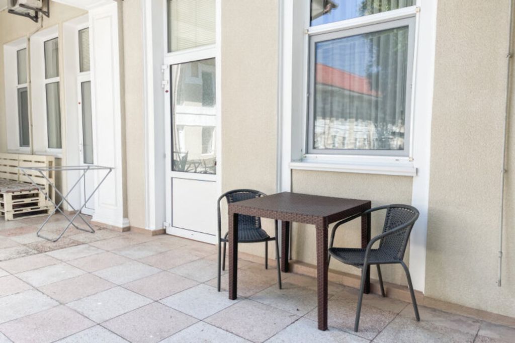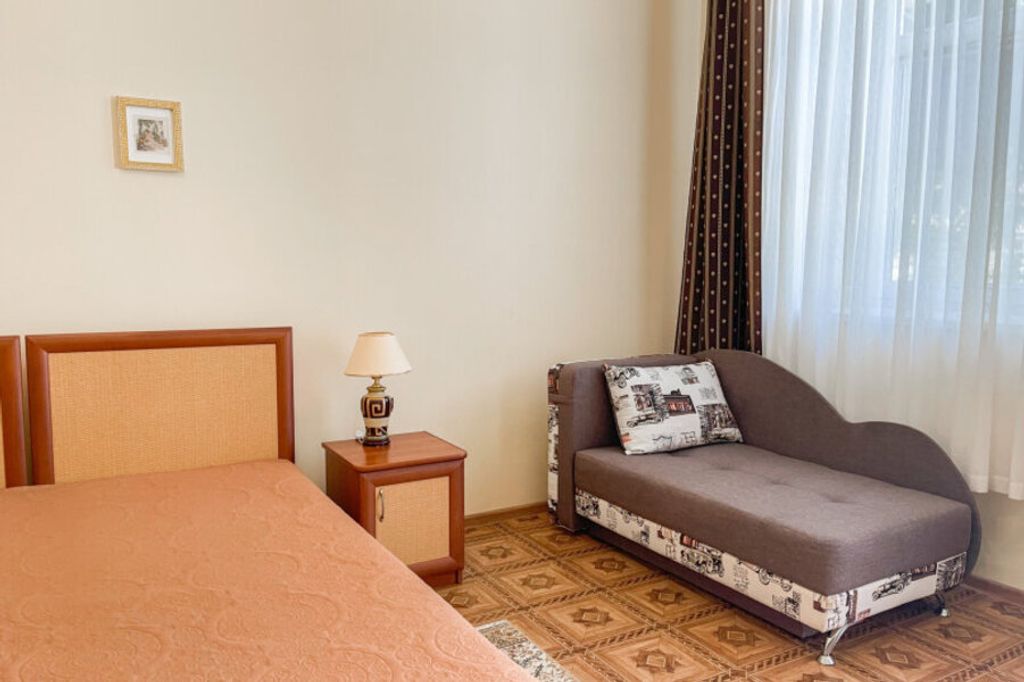 Пансионат семейного типа, расположенный в евпатории, на юго-западном побережье крымского полуострова. Расстояние от аэропорта г. Симферополя - 65 км. В г. Евпатория, от вокзала до пансионата - 2 км. Пансионат находится в центре курортной зоны, а именно, в 130 метрах от линии моря, в двух минутах ходьбы от набережной им. Максима горького, самой популярной и оживленной пешеходной улицы города. Несмотря на такое соседство, на территории пансионата очень тихо и по семейному спокойно и уютно. Пансионат располагает несколькими зданиями: реконструированным одноэтажным зданием начала 19 века и двухэтажным зданием, построенным в 2003 году. Всего в пансионате 14 номеров. Каждый номер имеет отдельный выход во двор. Во дворе открытое кафе. Уютное кафе с лёгким итальянским акцентом. Попадая в наше заведение, вы почувствуете себя, как дома, достаточно просто и по-домашнему вкусно. Кроме настоящей пасты и лазаньи вы можете заказать блюда местной кухни. А наши десерты не оставят вас равнодушными. Д