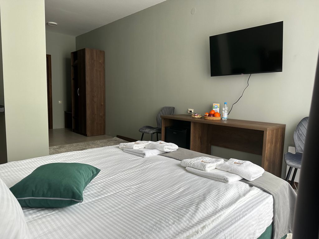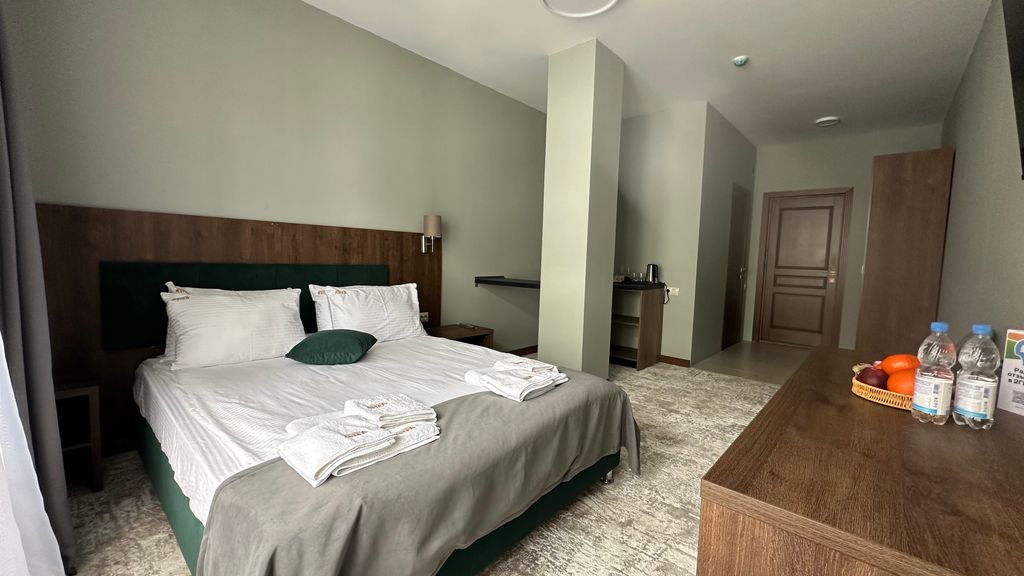Для гостей, которые приезжают на автомобиле, прошу заранее сообщить марку авто, гос. номер и регион для пропуска на территорию! Отель находится в горнолыжном курорте архыз поселок романтик на северном склоне. Перед нами течет речка, а вокруг горы. Лучшее место для отдыха. Отель располагает двухместными, трёхместными и четырёхместными номерами В номерах есть балконы с видом на речку и на лыжные склоны, стол, шкаф, журнальный столик, холодильник, электрический чайник, чайный набор, телевизор, фен, комплект полотенец,гигиенические принадлежности. С животными нельзя