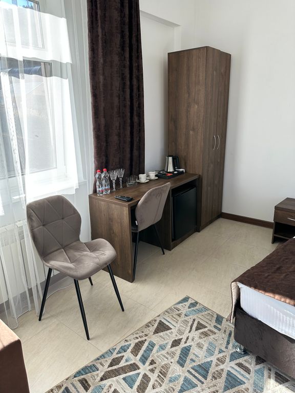 Для гостей, которые приезжают на автомобиле, прошу заранее сообщить марку авто, гос. номер и регион для пропуска на территорию! Отель находится в горнолыжном курорте архыз поселок романтик на северном склоне. Перед нами течет речка, а вокруг горы. Лучшее место для отдыха. Отель располагает двухместными, трёхместными и четырёхместными номерами В номерах есть балконы с видом на речку и на лыжные склоны, стол, шкаф, журнальный столик, холодильник, электрический чайник, чайный набор, телевизор, фен, комплект полотенец,гигиенические принадлежности. С животными нельзя