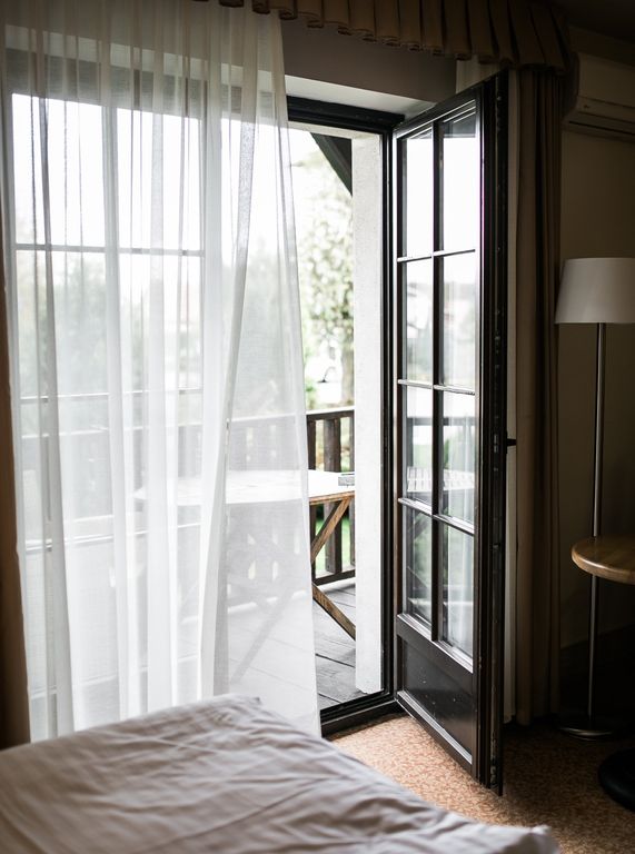 Четырехзвездочный загородный отель «Усадьба» с историей находится в живописном месте недалеко от Калининграда. Это уникальный отель, с рестораном домашней русской кухни и большой территорией для прогулок. В отеле 66 номеров, оформленных в тематическом стиле усадьбы и расположенных в трех зданиях, с видами на сад, бассейн и парковые зоны. Интерьер сочетает в себе атмосферу загородного дома с дизайнерскими авторскими элементами и отреставрированной старинной мебелью. Здесь в каждом номере есть уникальные элементы: старинный камин, антикварные люстры, шкафы и мебель. В отеле есть как классические номера, так и просторные двухкомнатные люксы, а также апартаменты. Гости отеля могут посетить открытый бассейн в летный сезон. Отель расположен в 15 минутах от центра Калининграда, в 17 минутам от аэропорта Храброво и в 20 минутах от ближайшего курортного города на побережье Балтийского моря Зеленоградска.