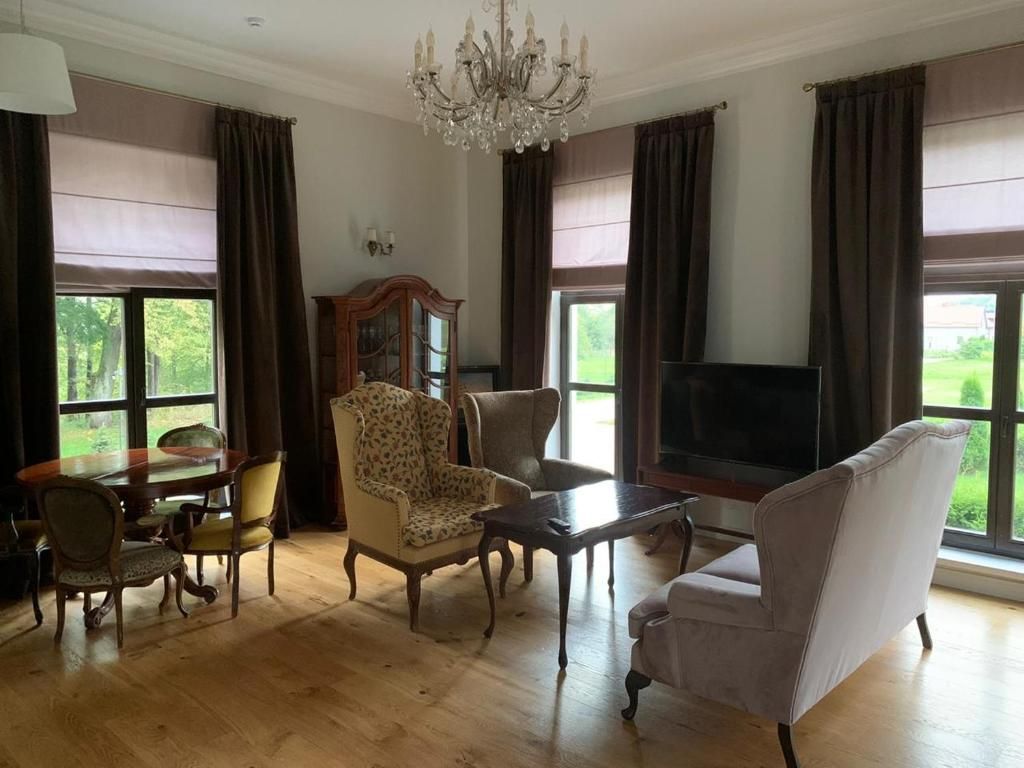 Четырехзвездочный загородный отель «Усадьба» с историей находится в живописном месте недалеко от Калининграда. Это уникальный отель, с рестораном домашней русской кухни и большой территорией для прогулок. В отеле 66 номеров, оформленных в тематическом стиле усадьбы и расположенных в трех зданиях, с видами на сад, бассейн и парковые зоны. Интерьер сочетает в себе атмосферу загородного дома с дизайнерскими авторскими элементами и отреставрированной старинной мебелью. Здесь в каждом номере есть уникальные элементы: старинный камин, антикварные люстры, шкафы и мебель. В отеле есть как классические номера, так и просторные двухкомнатные люксы, а также апартаменты. Гости отеля могут посетить открытый бассейн в летный сезон. Отель расположен в 15 минутах от центра Калининграда, в 17 минутам от аэропорта Храброво и в 20 минутах от ближайшего курортного города на побережье Балтийского моря Зеленоградска.