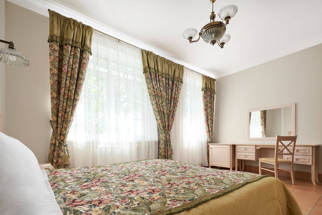 Проект отеля разрабатывался специалистами, лучшими в области гостиничного бизнеса, обладает хорошо продуманной инфраструктурой, предоставляет полный комплекс гостиничных услуг. 40 просторных комфортабельных номеров представлены в различных стилях - от классики до модерна. Номера оснащены всем необходимым для комфортного пребывания: ванная комната, телефон, холодильник, фен. В некоторых номерах есть просторные террасы и отдельные кухни, также есть возможность проживания в уютном номере с двумя комнатами. На всей территории комплекса работает бесплатная зона wi-fi. Два корпуса. Ценностью для нас является конференц зал для проведения семинаров, презентаций и других деловых мероприятий. Его возможно трансформировать в 2 отдельных помещения на 20 и 100 человек. Малый зал отлично может быть использован для проведения переговоров. В холодное время года используется камин на дровах, что создаёт атмосферу комфорта для плодотворной работы. Конференц зал оборудован новейшей техникой: проектором,