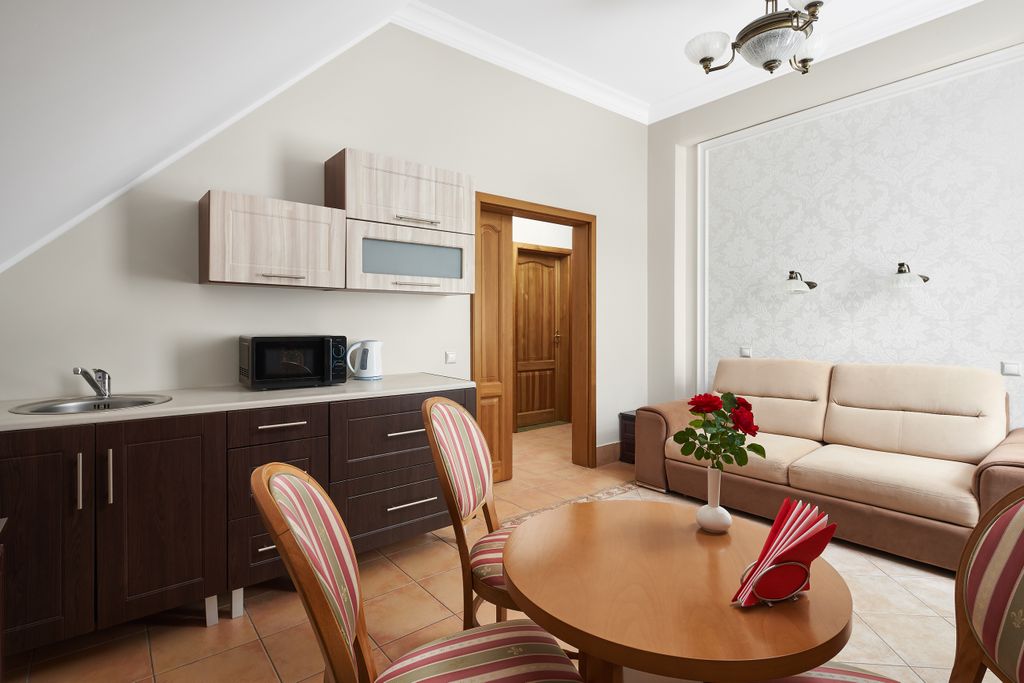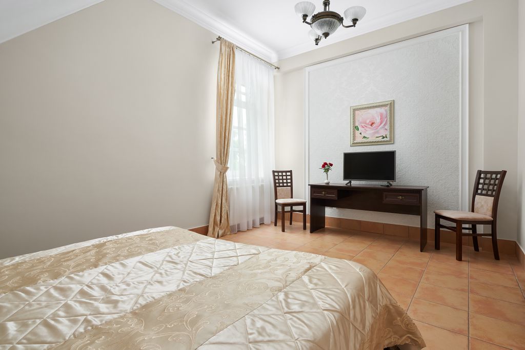 Проект отеля разрабатывался специалистами, лучшими в области гостиничного бизнеса, обладает хорошо продуманной инфраструктурой, предоставляет полный комплекс гостиничных услуг. 40 просторных комфортабельных номеров представлены в различных стилях - от классики до модерна. Номера оснащены всем необходимым для комфортного пребывания: ванная комната, телефон, холодильник, фен. В некоторых номерах есть просторные террасы и отдельные кухни, также есть возможность проживания в уютном номере с двумя комнатами. На всей территории комплекса работает бесплатная зона wi-fi. Два корпуса. Ценностью для нас является конференц зал для проведения семинаров, презентаций и других деловых мероприятий. Его возможно трансформировать в 2 отдельных помещения на 20 и 100 человек. Малый зал отлично может быть использован для проведения переговоров. В холодное время года используется камин на дровах, что создаёт атмосферу комфорта для плодотворной работы. Конференц зал оборудован новейшей техникой: проектором,