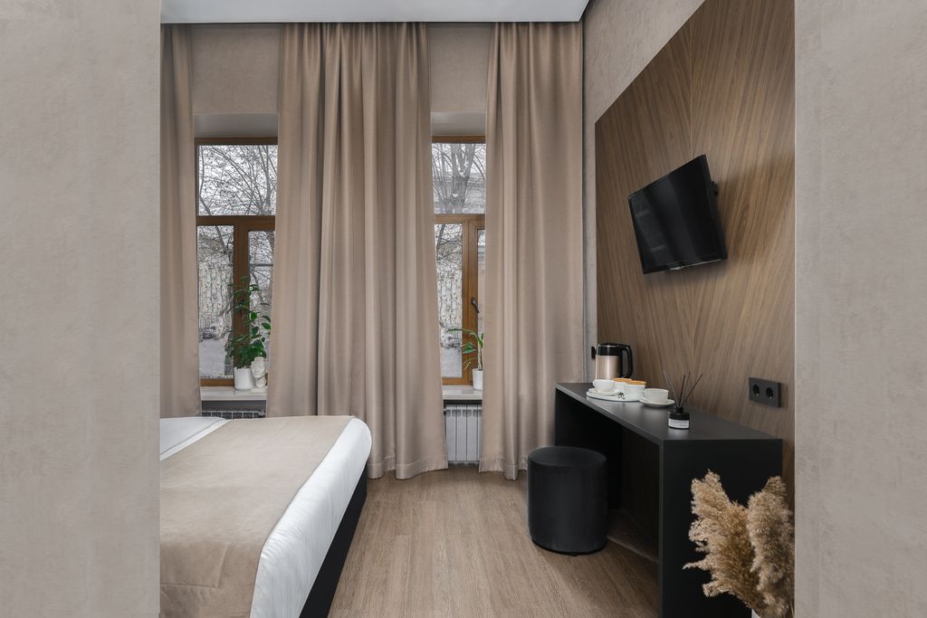 Вас не будет беспокоить шум мегаполиса — в Старопименовском переулке царит атмосфера спокойствия и полная изоляция от суеты оживлённого города. Здание Tverskoy Boutique Hotel является частью усадебного комплекса, памятником архитектуры начала XVIII века. Более двух веков назад этот флигель уже принимал гостей усадьбы. В отеле всего 14 комфортных просторных номеров. В каждом номере — телевизор, мини-бар, сейф, качественная мебель, большие зеркала, душ или ванная. Высокоскоростной бесплатный Wi-Fi, бесплатная услуга «питание в номер», парковка на территории отеля. В номерах созданы все условия не только для полноценного отдыха, но и для удаленной работы. Мы уделяем большое внимание безопасному пребыванию наших гостей: регулярная дезинфекция поверхностей, индивидуальные принадлежности, соблюдение безопасных расстояний в отеле. Мы не применяем общую систему кондиционирования. Дарим нашим гостям возможность насладиться достопримечательностями и развлечениями Москвы, совместить это с комфорт