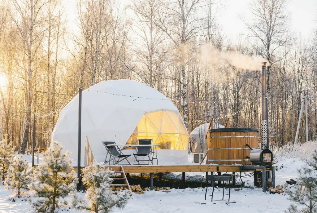 Геокупол с купелью — романтика, панорама и горячая вода под открытым небом. Если хочется вырваться вдвоём, вдохнуть тишину, встретить закат из купели и побыть в окружении чистой природы — выбирай геокупол с купелью. Это купольный домик с панорамным окном, стильным интерьером и собственной горячей фурако прямо на террасе. Идеально для 2–4 гостей. Здесь нет ничего лишнего — только комфорт, эстетика и тот самый момент. Для пар На двоих — лучше не бывает. Этот купол идеально подходит для: – годовщин, предложений, дней рождения – отдыха без экрана и суеты – сюрприза для любимого человека Внутри: – двуспальная кровать с мягким бельём (PREMIUM) качества – ванная с душем, феном, косметикой – мини-кухня с плитой, микроволновкой, посудой и чайником – Wi-Fi, колонка «Алиса», тёплый пол, кондиционер – проектор по запросу На террасе: ужин, купель, свет гирлянд и приватность. По запросу: оформление номера, ужин в номер, шампанское, баня, массаж. Для блогеров и эстетов Минимализм и эстетика — внутр