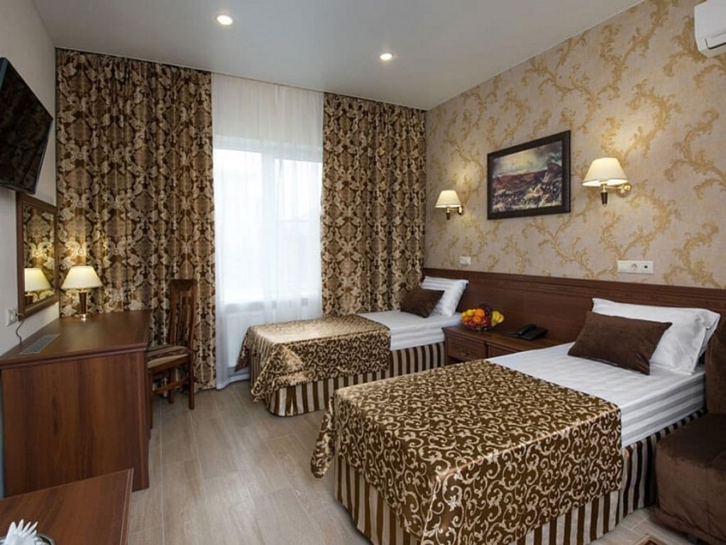 Отель «Суворов»*** – новый отель в городе Краснодаре. Отель расположен в самом центре города, в шаговой доступности от авто и ж/д вокзалов, стадиона «Кубань», улицы Красной. Уютные номера укомплектованы всем необходимым для комфортного отдыха. На всей территории отеля «Суворов» есть бесплатный высокоскоростной Wi-Fi. Отель также располагает бесплатной гостевой парковкой. 12 современных комфортных номера 3 категорий, разумные цены, бесплатный беспроводной интернет, гостеприимный персонал – это основные преимущества отеля "Суворов". Также мы предлагаем круглосуточное обслуживание и любые справочно-информационные услуги. На территории работает кафе-столовая с вкусной и доступной европейской кухней, где вы можете позавтракать или провести деловую встречу