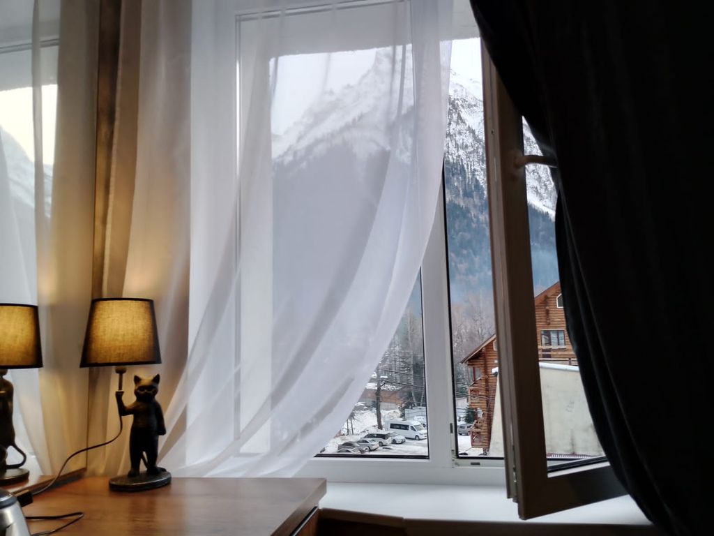 Отель «Арючат» в Домбае предлагает гостям комфортное размещение вблизи от новой канатной дороги. Номерной фонд гостиницы «Арючат» включает двухместные стандартные номера и полулюксы, один из которых располагается в двух уровнях и оснащен лестницей. Отдыхающим бесплатно предоставляется электрочайник. В гостинице работает кафе с вкусными домашними обедами и ужинами. По запросу гостей завтрак могут принести прямо в номер.