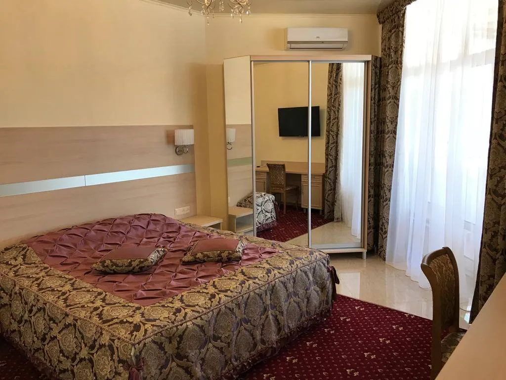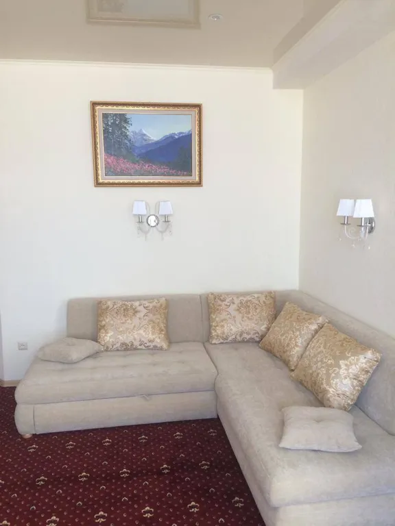 Шикарный 3-ех комнатный номер, площадью 120 м2. Расположен на 2ом этаже, с большой террасой. Терраса укомплектована шезлонгами, столиком, стульями и сушкой для белья. Спальня №1 - двуспальная кровать. В комнате есть отдельный С/У с душевой кабиной. Спальня №2 - двуспальная кровать и диван (не раскладной, при необходимости можно застелить в качестве дополнительного места). Гостиная - угловой двуспальный раскладной диван в качестве дополнительного места. Кухонная зона - двухкамерный холодильник, индукционная плита, мойка, набор посуды. Дополнительный С/У с ванной.