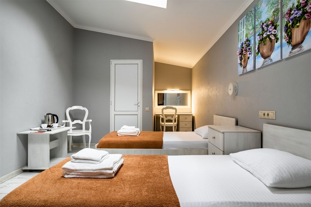 Уютный четырехзвездочный отель на 42 номера. Для гостей отеля бесплатно доступен тёплый подогреваемый до 30℃ бассейн. Вкусная сытная еда ресторана, финская сауна. Насладитесь видом на горы под шум горной реки, которая протекает вдоль отеля. Сотрудники отеля помогут организовать экскурсию, оборудование, сориентируют на местности. Категории номеров на выбор: с видом на горы, с террасой или балконом. Для пары, большой семьи или компании. Выберите подходящий именно вам. Покоряйте вершины – горнолыжное оборудование будет доставлено в отель, останется всегда тёплым и сухим – предусмотрена сушка. Каждое утро, после завтрака, организован бесплатный трансфер на подъёмники: Горная Карусель, Роза Хутор, Газпром. В течении 2-х часов по графику. Подобранное и настроенное снаряжение будет доставлено в отель или прямо к подъемникам. Быстрое оформление и не нужно стоять в очередях. После активного отдыха будет актуально погреться в сауне. Приятная, тёплая на ощупь отделка помещения, сухой пар и отдел