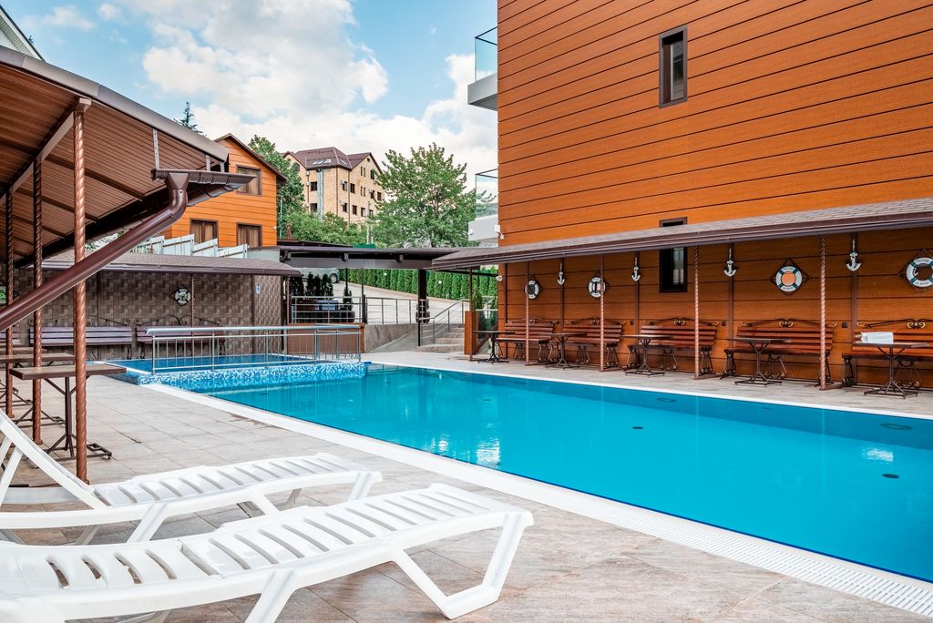 Уютный четырехзвездочный отель на 42 номера. Для гостей отеля бесплатно доступен тёплый подогреваемый до 30℃ бассейн. Вкусная сытная еда ресторана, финская сауна. Насладитесь видом на горы под шум горной реки, которая протекает вдоль отеля. Сотрудники отеля помогут организовать экскурсию, оборудование, сориентируют на местности. Категории номеров на выбор: с видом на горы, с террасой или балконом. Для пары, большой семьи или компании. Выберите подходящий именно вам. Покоряйте вершины – горнолыжное оборудование будет доставлено в отель, останется всегда тёплым и сухим – предусмотрена сушка. Каждое утро, после завтрака, организован бесплатный трансфер на подъёмники: Горная Карусель, Роза Хутор, Газпром. В течении 2-х часов по графику. Подобранное и настроенное снаряжение будет доставлено в отель или прямо к подъемникам. Быстрое оформление и не нужно стоять в очередях. После активного отдыха будет актуально погреться в сауне. Приятная, тёплая на ощупь отделка помещения, сухой пар и отдел