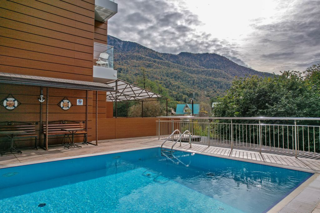Уютный четырехзвездочный отель на 42 номера. Для гостей отеля бесплатно доступен тёплый подогреваемый до 30℃ бассейн. Вкусная сытная еда ресторана, финская сауна. Насладитесь видом на горы под шум горной реки, которая протекает вдоль отеля. Сотрудники отеля помогут организовать экскурсию, оборудование, сориентируют на местности. Категории номеров на выбор: с видом на горы, с террасой или балконом. Для пары, большой семьи или компании. Выберите подходящий именно вам. Покоряйте вершины – горнолыжное оборудование будет доставлено в отель, останется всегда тёплым и сухим – предусмотрена сушка. Каждое утро, после завтрака, организован бесплатный трансфер на подъёмники: Горная Карусель, Роза Хутор, Газпром. В течении 2-х часов по графику. Подобранное и настроенное снаряжение будет доставлено в отель или прямо к подъемникам. Быстрое оформление и не нужно стоять в очередях. После активного отдыха будет актуально погреться в сауне. Приятная, тёплая на ощупь отделка помещения, сухой пар и отдел