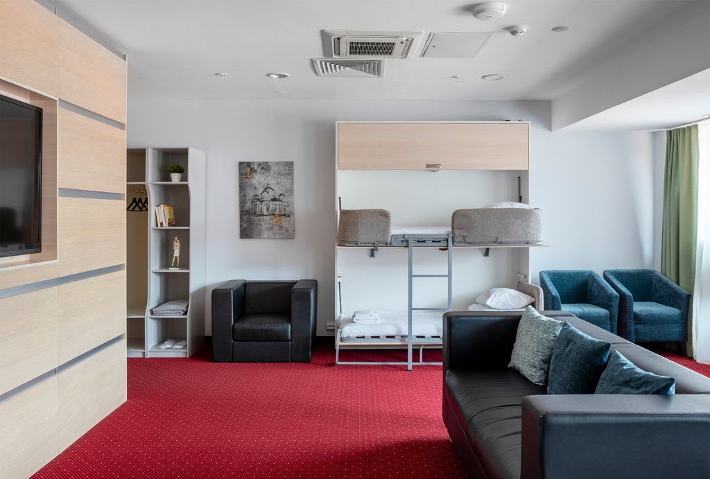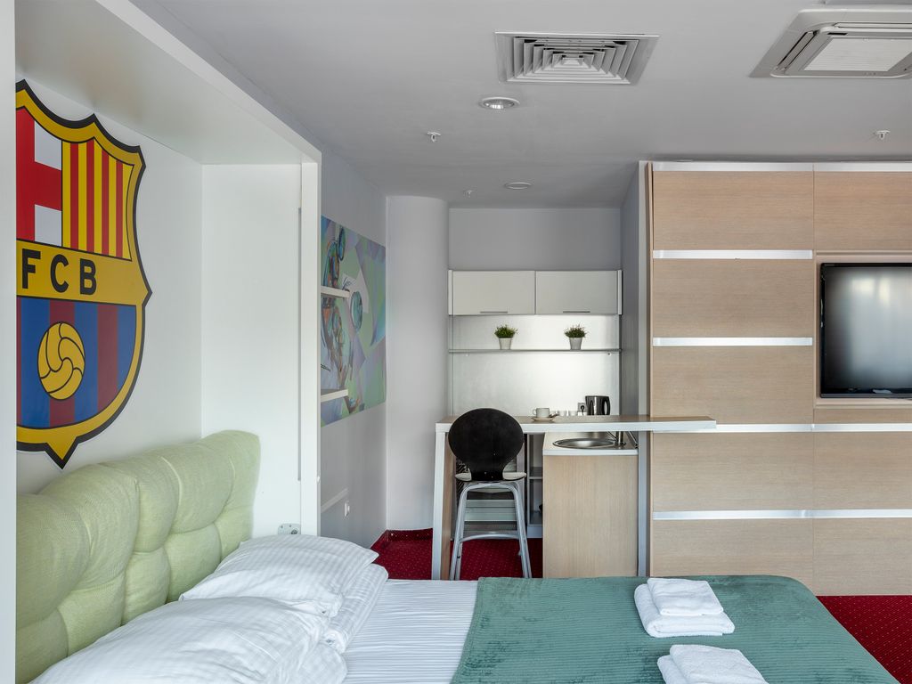 Единственный в России отель на 45-тысячном стадионе, с шикарным видом и собственным выходом прямо из номера на чашу футбольного стадиона «Ак Барс Арена». Отлично подойдет как для деловых путешественников, так и для туристов. В отеле представлено 17 комфортных для проживания номеров различных категорий, с собственным санузлом и ванной, со всеми гигиеническими принадлежностями, феном, халатом, тапочками. Номера от 20 до 50 м2, оснащены удобной кроватью с ортопедическим матрасом, всей необходимой мебелью, телевизором с плоским экраном, холодильником, телефоном, кондиционером, чайной станцией, беспроводным интернетом, рабочей зоной, столом, стулом.