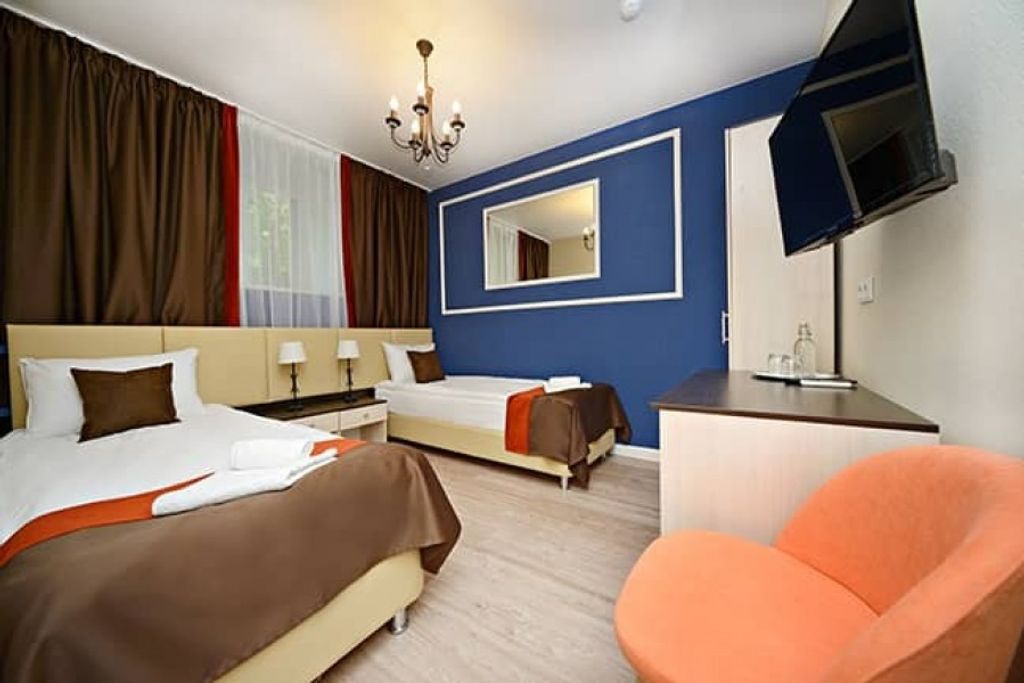 Трёхзвёздочный бизнес отель Апельсин на Красной Пресне предлагает размещение в современных комфортабельных номерах по привлекательным ценам рядом с Центральным выставочным комплексом Экспоцентр в Москве. Удобное расположение отеля в бизнес центре Москвы - отличный вариант, если Вы планируете деловую поездку в столицу, организуете выставку или проводите семинары. Дизайнерское оформление номеров в отеле, с большими кроватями и улучшенной планировкой, особенно понравятся предпринимателям и бизнесменам, которые приехали в Москву с деловым визитом. Мы предлагаем проживание в отеле в Пресненском районе Москвы по приемлемым ценам. Остановившись в отеле на Красной Пресне, Вы можете забронировать стандартный двухместный номер с двумя отдельными кроватями, улучшенный семейный номер, для отдыха с детьми, либо двухместный номер трансформер повышенной комфортности.