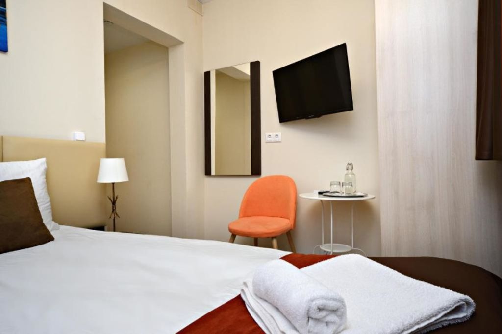 Трёхзвёздочный бизнес отель Апельсин на Красной Пресне предлагает размещение в современных комфортабельных номерах по привлекательным ценам рядом с Центральным выставочным комплексом Экспоцентр в Москве. Удобное расположение отеля в бизнес центре Москвы - отличный вариант, если Вы планируете деловую поездку в столицу, организуете выставку или проводите семинары. Дизайнерское оформление номеров в отеле, с большими кроватями и улучшенной планировкой, особенно понравятся предпринимателям и бизнесменам, которые приехали в Москву с деловым визитом. Мы предлагаем проживание в отеле в Пресненском районе Москвы по приемлемым ценам. Остановившись в отеле на Красной Пресне, Вы можете забронировать стандартный двухместный номер с двумя отдельными кроватями, улучшенный семейный номер, для отдыха с детьми, либо двухместный номер трансформер повышенной комфортности.
