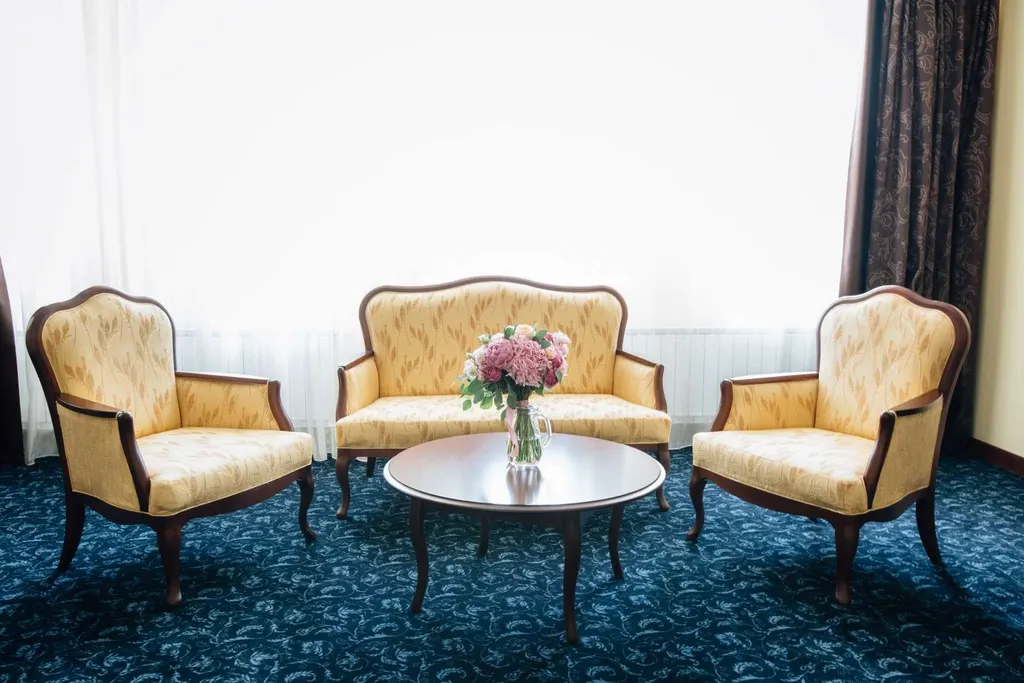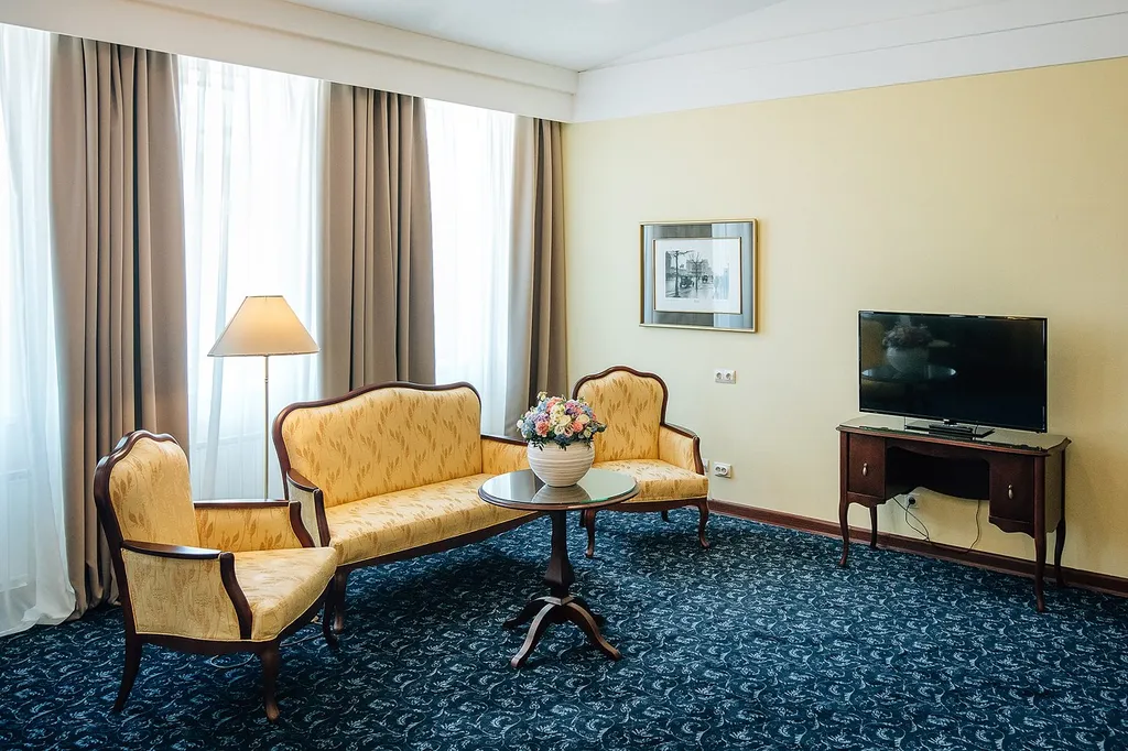 Один ребёнок до 7 лет — можно без отдельного спального места. Просторный, интересный по дизайну номер разделён на две зоны: мини-гостиную и спальню. Необычный и атмосферный, он всегда попадает в поле зрения молодоженов, которые ищут подходящее место для свадебных фотосессий.