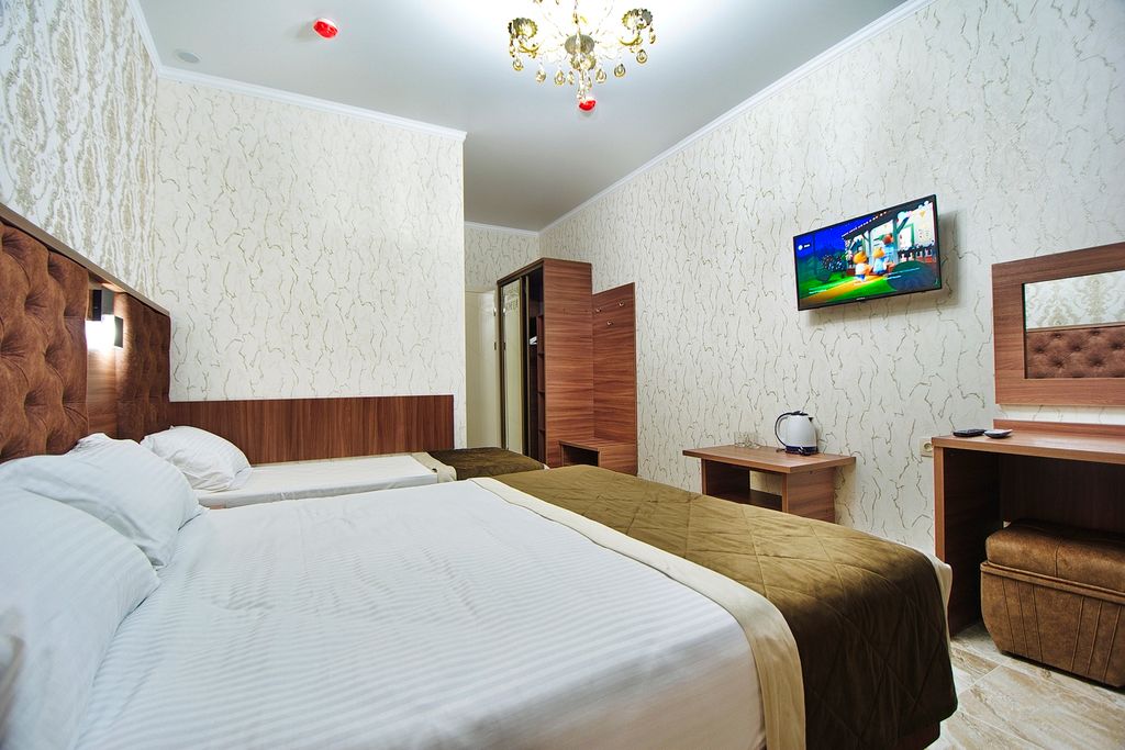 Новый отель Grand Sofia построен в 2022 году. В шаговой доступности рынок, аптеки и магазины! До пешеходной зоны ведущей к морю, парка корницкого, всего 30 метров! А это 3 минуты прогулки! По дороге вы будете очарованы видами гор, привлечены запахами сладостей и играми белок! Grand Sofia — это современный трёхэтажный комплекс, оборудованный лифтом, подземной автопарковкой, большим бассейном с подогревом и детским отделением, расположенный под открытым небом, а так же столовой! Для вашего отдыха представлены благоустроенные однокомнатные и двухкомнатные номера с балконами! Гостиница кабардинки Grand Sofia — это место, где вы найдёте ни с чем несравнимый сервис и незабываемый отдых! Перечень услуг, входящих в стоимость номера: Открытый бассейн с подогревом и детским отделением Парковка Детские анимационные программы Пользование всем оснащением номера, в том числе и кабельным телевидением Ежедневная влажная уборка в номере Замена полотенец и постельного белья Вызов скорой помощи и по