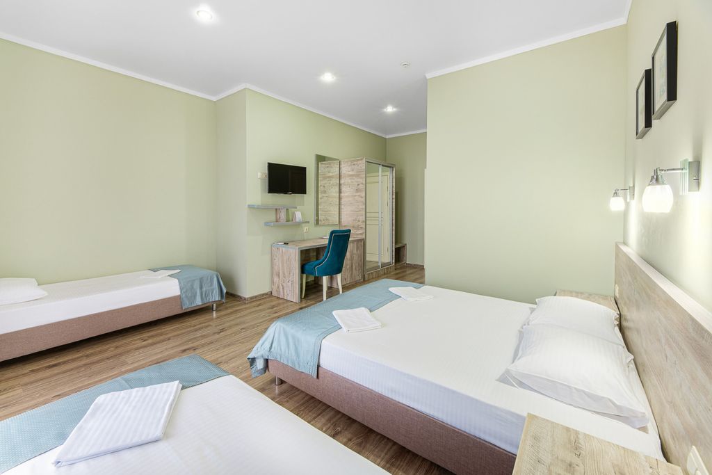 Отель H2O с открытым бассейном, общим лаунджем, рестораном и баром расположен в поселке Витязево. На территории обустроена детская игровая площадка и работает детский клуб. К услугам гостей круглосуточная стойка регистрации, в отеле осуществляется доставка еды и напитков в номер. Во всех зонах отеля можно воспользоваться бесплатным Wi-Fi. Для гостей организуют трансфер от/до аэропорта. Номера с рабочим столом оснащены кондиционером, телевизором с плоским экраном, чайником и холодильником. В распоряжении гостей балкон и собственная ванная комната с душем. В номерах установлен сейф. Во всех номерах отеля H2O предоставляются полотенца и постельное белье. По утрам гостям предлагают континентальный завтрак или завтрак «шведский стол». Гости отеля могут отдохнуть на террасе для загара. Поблизости находятся пляжи Витязево, Джемете и Витязево. Расстояние от отеля H2O до международного аэропорта Анапа (Витязево) составляет 9 км.