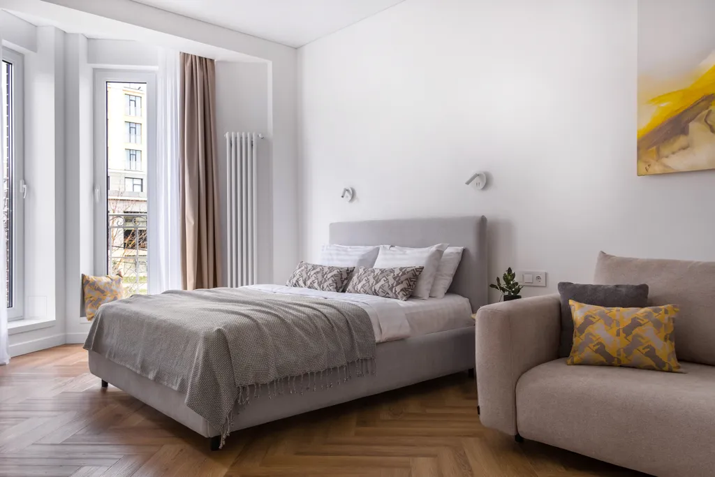 Самая новая и комфортабельная квартира рядом с Курортным парком. Мы укомплектовали квартиру под требовательного Клиента. Панорамные окна с подогреваемыми подоконниками, позволят любоваться кронами деревьев. Шторы блэкаут, можно не спать в маске. Тихие инверторные кондиционеры с ночным режимом, для жарких ночей. Квартира оснащена бризерами - это принудительная подача воздуха с фильтрами nepa, актуальны для аллергиков в периоды цветений. Электрокамин, с различными режимами, окрасит Ваши вечера. Телевизоры разных форматов. Кровать 160х200 с ортопедическим матрацем, дополнительным топером и белоснежным сатиновым постельным бельем. Диван с полноценным спальным местом 160х200 и дополнительным матрацем для Вашего комфорта. Стиральная и сушильная машины. Французскую чугунную ванну, дополнили белыми махровыми полотенцами. Гигиенический и тропический душ. Холодильник и посудомоечная машина. Духовой шкаф и микроволновая печь. Капсульная кофемашина и электрочайник. Кухонная утварь, бокалы, фарфор
