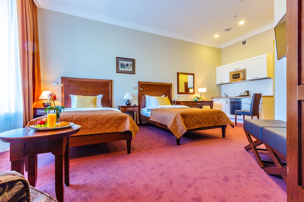 Отель Райкин Плаза расположен в тихом зеленом районе Москвы — Марьина Роща и занимает исключительно выгодное положение в непосредственной близости от делового и культурного центра столицы. Райкин Плаза Отель находится в сквере рядом с театром «Сатирикон» и молодежным центром «КВН», в минуте ходьбы от станции метро «Марьина Роща» и торгово-развлекательного комплекса Райкин Plaza, недалеко от ВДНХ Экспо. В отеле 54 комфортабельных номера, большинство из которых оснащены кухнями, что делает их идеальным местом для длительного проживания и гостей с детьми. Все номера отеля являются некурящими. В отеле Райкин Плаза будут рады разместить гостей с домашними животными. Отель предоставляет гостям бесплатный доступ на подземную парковку (по запросу), также может предложить услуги индивидуального трансфера. Гости могут прекрасно провести время в ресторане или баре отеля, а также бесплатно воспользоваться тренажерным залом и ИК сауной. На территории работает бесплатный Wi-Fi.