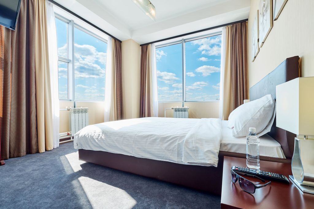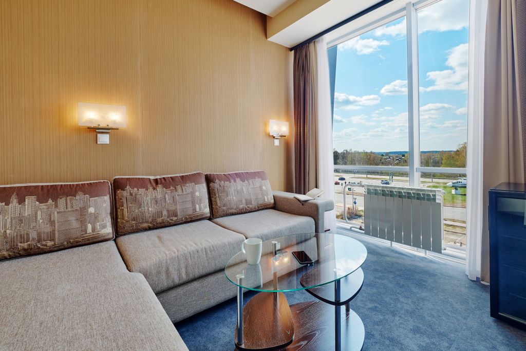 В одном здании с отелем находится vip-зал аэропорта, вход оплачивается отдельно. Из окон отеля видно взлётную полосу. Гостям доступны такие бесплатные услуги, как wi-fi, пакетированный чай и питьевая вода. На территории есть бесплатная неохраняемая и платная охраняемая парковки. Гости могут заказать завтрак с 6: 00 до 11: 00, ужин, лёгкие закуски и напитки в кафе отеля или в номер. Рядом с отелем есть супермаркет. Услуги раннего заезда и позднего выезда в случае задержки рейса не более, чем на 2 часа, в отеле предоставляются бесплатно. Все номера оснащены шумоизоляционными окнами и шторами, блокирующими солнечный свет. Номерной фонд составляют двухкомнатные люксы и номера стандарт с одной двуспальной кроватью или двумя односпальными кроватями. В ванной комнате есть тапочки, туалетно-косметические принадлежности и фен. Гости могут воспользоваться кухней, услугами стирки и глажения.