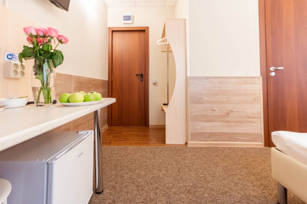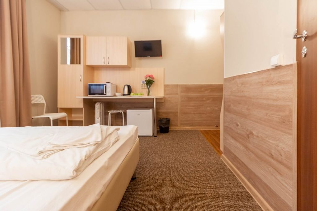 Комфортный и уютный «Ахоум-отель на Окружной». В 5 минутах ходьбы от станции метро «Окружная». 20 минут на метро до центра города. В 5 км. от выставочного центра «ВДНХ». Это удобный выбор для тех, кто приезжает в Москву по работе или на отдых, и хочет остановиться в комфортных условиях без переплат. В каждом номере: собственная ванная комната с душем и туалетом, феном, полотенцами, мылом, гелем для душа и шампунем стол, шкаф, стул, лампа,ТВ с плоским экраном и бесплатный Wi-Fi; мини-кухня с электрическим чайником, СВЧ, мини-холодильником, посудой. Одноместные номера с односпальной кроватью. В двухместных номерах кровати-трансформеры, которые по запросу соединяем или разъединяем. Трехместные номера с 2 кроватями-трансформерами и кресло-кроватью. В отеле кафе «Калина» предоставляет питание в формате «комплексных» завтраков, обедов и ужинов. Также, возможно питание по меню. Уборка номеров осуществляется ежедневно. Стирку можно заказать через администратора. Утюг и гладильная доска находя
