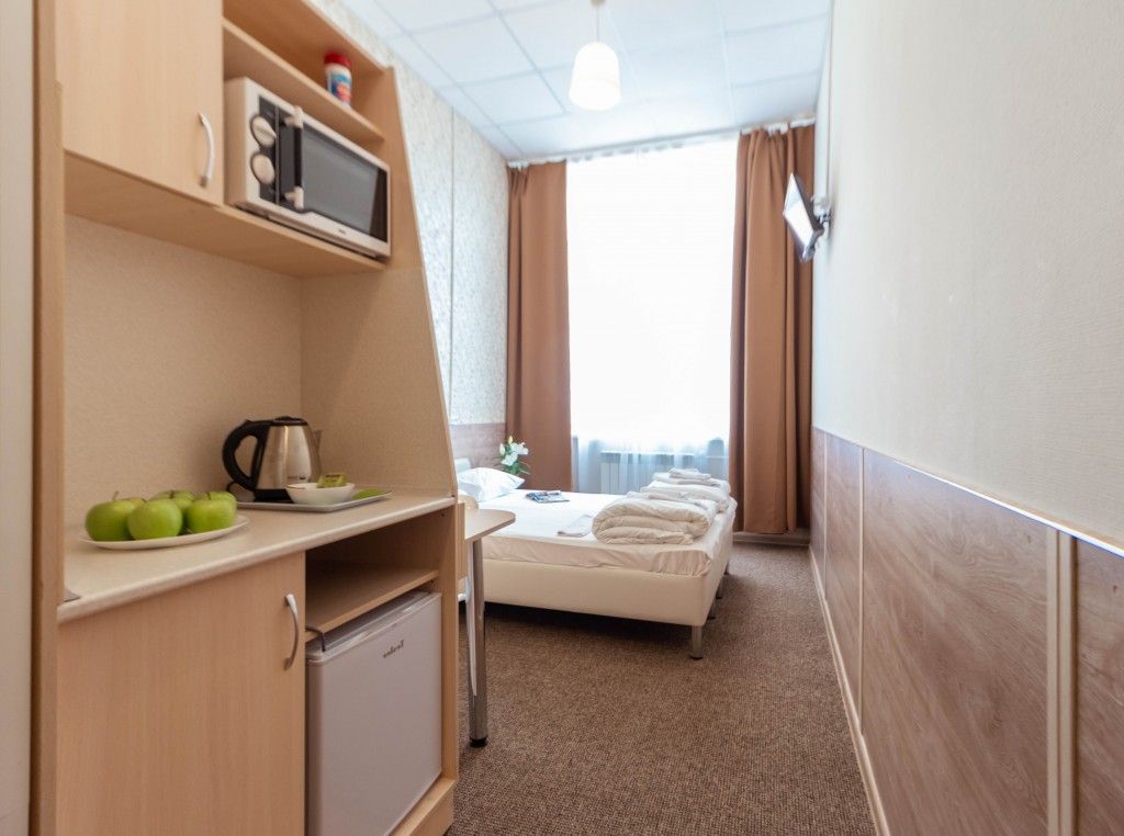 Комфортный и уютный «Ахоум-отель на Окружной». В 5 минутах ходьбы от станции метро «Окружная». 20 минут на метро до центра города. В 5 км. от выставочного центра «ВДНХ». Это удобный выбор для тех, кто приезжает в Москву по работе или на отдых, и хочет остановиться в комфортных условиях без переплат. В каждом номере: собственная ванная комната с душем и туалетом, феном, полотенцами, мылом, гелем для душа и шампунем стол, шкаф, стул, лампа,ТВ с плоским экраном и бесплатный Wi-Fi; мини-кухня с электрическим чайником, СВЧ, мини-холодильником, посудой. Одноместные номера с односпальной кроватью. В двухместных номерах кровати-трансформеры, которые по запросу соединяем или разъединяем. Трехместные номера с 2 кроватями-трансформерами и кресло-кроватью. В отеле кафе «Калина» предоставляет питание в формате «комплексных» завтраков, обедов и ужинов. Также, возможно питание по меню. Уборка номеров осуществляется ежедневно. Стирку можно заказать через администратора. Утюг и гладильная доска находя