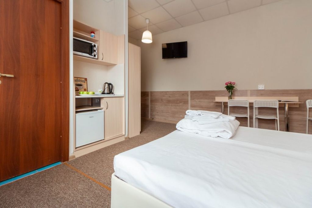 Комфортный и уютный «Ахоум-отель на Окружной». В 5 минутах ходьбы от станции метро «Окружная». 20 минут на метро до центра города. В 5 км. от выставочного центра «ВДНХ». Это удобный выбор для тех, кто приезжает в Москву по работе или на отдых, и хочет остановиться в комфортных условиях без переплат. В каждом номере: собственная ванная комната с душем и туалетом, феном, полотенцами, мылом, гелем для душа и шампунем стол, шкаф, стул, лампа,ТВ с плоским экраном и бесплатный Wi-Fi; мини-кухня с электрическим чайником, СВЧ, мини-холодильником, посудой. Одноместные номера с односпальной кроватью. В двухместных номерах кровати-трансформеры, которые по запросу соединяем или разъединяем. Трехместные номера с 2 кроватями-трансформерами и кресло-кроватью. В отеле кафе «Калина» предоставляет питание в формате «комплексных» завтраков, обедов и ужинов. Также, возможно питание по меню. Уборка номеров осуществляется ежедневно. Стирку можно заказать через администратора. Утюг и гладильная доска находя