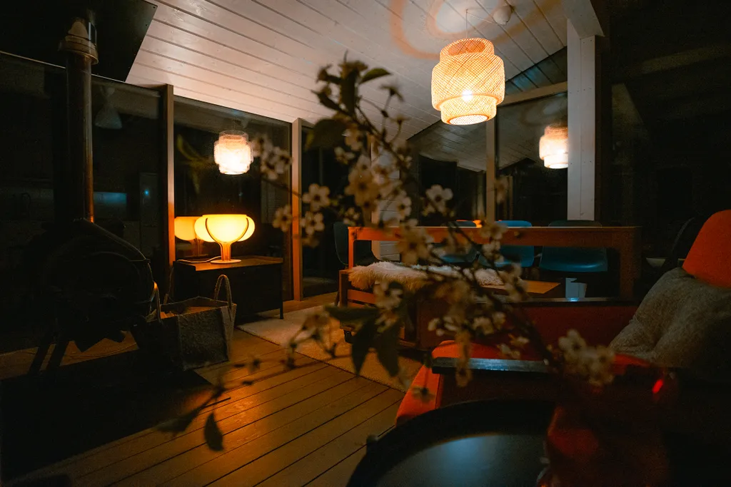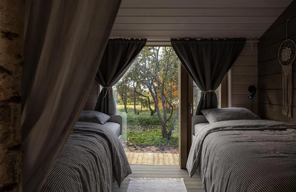 У нас есть два современных панорамных дома со стеклянными стенами (так здорово считать звёзды ночью!) и тремя спальнями. Один дом называется Оранж и другой дом Руж. В домах три спальни ( есть две спальни с двуспальными кроватями и одна спальня с двумя односпальными кроватями) , салоном-кухней и отдельной ванной комнатой. современной техникой (в том числе посудомоечной машиной) кухня с комплектом посуды, ванная комната и большая терраса с видом. Максимальная вместимость 6 человек.