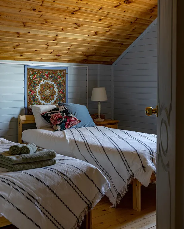 Флигель по названию можно подумать, что это что-то небольшое, но это не так! Во Флигеле — два этажа. На втором этаже мы уже оборудовали три комнаты: Незабудка/ Сирень и Ландыш. Всего 3 номера с общей душевой комнатой. Во флигеле расположен большой зал, где можно заниматься йогой, спортом ли проводить семинары, лекций или любых другие ваши мероприятия.