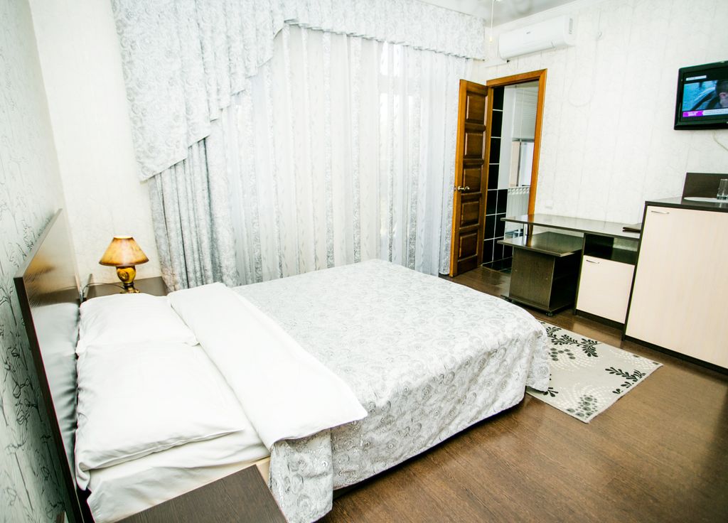 В Frant Hotel (Франт Отель) к услугам гостей современные, комфортные номера различных категорий: президентский люкс, VIP-люкс, люкс, а также стандартные двух-, трех- и четырехместные номера. И, конечно, номера эконом класса различной вместимости. Приятный интерьер, удобная мягкая мебель, тишина и покой в номере позволят хорошо отдохнуть после долгой дороги. Все номера оснащены кондиционером, телевизором с плоским экраном, холодильником и столом. В собственных ванных комнатах есть душ, предоставляются халаты и бесплатные туалетные принадлежности. Отель "Frant Hotel" имеет очень удобное расположение. Остановка общественного транспорта находится в шаговой доступности от гостиницы. Близость ЖД вокзала, автовокзала, аэропорта и основных достопримечательностей города делает гостиницу "Frant Hotel" особенно удобной для туристов и жителей города. Отличительная особенность гостиницы - это ресторан, расположенный на первом этаже, с европейской и кавказской кухней, круглосуточ