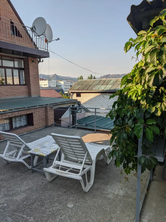 Двухуровневый двор. С зоной отдыха на втором уровне. Крытое парковочное место (см. фото). Двухэтажный дом, расположенный в тихом и спокойном месте. 3 комнаты, кухня, душ, туалет, бытовая техника, кондиционер, постельное белье, ТВ, интернет. Парковка возможна во дворе. Вымощенный камнем двор. Рядом остановка общественного транспорта. Вся инфраструктура. До моря 10 минут езды или пешком. Идеальное место для большой семьи или дружной компании и комфортного отдыха.