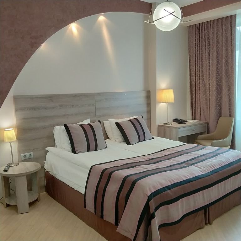 Современный гостиничный комплекс, расположенный в центре Адлера в 3 км от аэропорта и в 2 км от ж/д вокзала. Отель располагает 40 номерами различных категорий, от стандартных номеров до просторных семейных номеров открытой планировки. Во многих из них имеется собственный балкон. Комфортабельные номера отвечают требованиям международных стандартов 4*. Хороший выбор, когда понежиться в отеле так же важно, как и погулять. Рядом с отелем — Пляж Чайка-1, Пляж VinoGrad (Мандарин) и Пляж Лего (Мзымта). В отеле есть бесплатный Wi-Fi. К услугам гостей спа-комплекс, в котором обустроена финская сауна и проводятся различные виды массажа. В распоряжении гостей бар и ресторан с широким выбором блюд. По утрам для гостей сервируют завтрак. Все номера оснащены кондиционерами, имеют отдельную туалетную комнату с душевой кабиной, феном и всеми принадлежностями для ванной. В номерах к услугам наших гостей телевизор, спутниковое ТВ, а также холодильник, чайная станция и сейф для хранения ценных вещей.