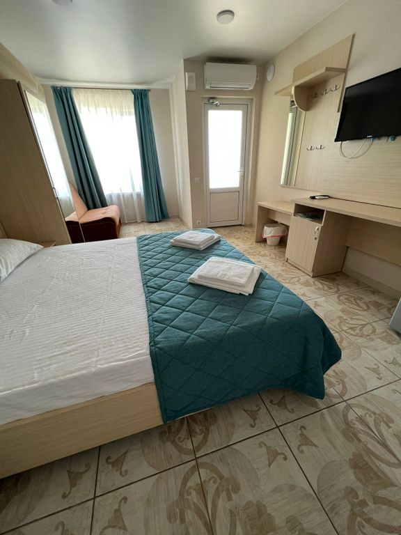 Курортный отель «Маяк» расположен в п. Николаевке, Республика Крым. Открыт после реконструкции в 2022 году. Наш отель находится в пешей доступности от центра города. Отель расположен прямо на берегу Черного моря, все номера отеля имеют прямой вид на море. В отеле для гостей в летний период работает бар и ресторан. В стоимость проживания включен завтрак по системе «Шведская линия» или комплексный завтрак (в зависимости от сезона). Бесплатный Wi-Fi на территории, организована парковка. Также для гостей в отеле: лежаки, полотенца для пляжа, площадка для барбекю (оплачивается отдельно) и открытый бассейн. На территории обустроена небольшая детская площадка. В отеле возможно размещение с домашним любимцем (по предварительному согласованию за дополнительную плату). Дополнительно: заказ трансфера, прачечная и гладильные услуги.