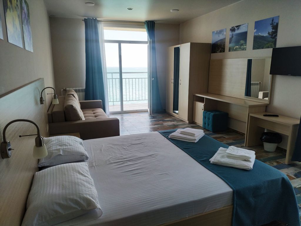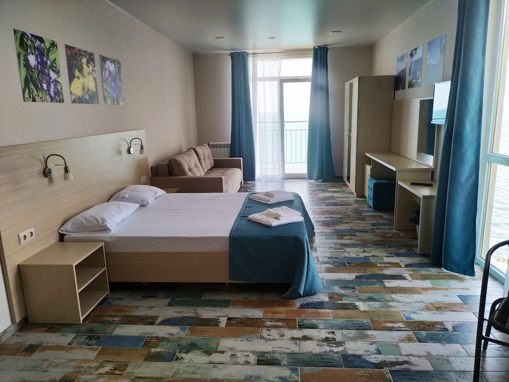 Курортный отель «Маяк» расположен в п. Николаевке, Республика Крым. Открыт после реконструкции в 2022 году. Наш отель находится в пешей доступности от центра города. Отель расположен прямо на берегу Черного моря, все номера отеля имеют прямой вид на море. В отеле для гостей в летний период работает бар и ресторан. В стоимость проживания включен завтрак по системе «Шведская линия» или комплексный завтрак (в зависимости от сезона). Бесплатный Wi-Fi на территории, организована парковка. Также для гостей в отеле: лежаки, полотенца для пляжа, площадка для барбекю (оплачивается отдельно) и открытый бассейн. На территории обустроена небольшая детская площадка. В отеле возможно размещение с домашним любимцем (по предварительному согласованию за дополнительную плату). Дополнительно: заказ трансфера, прачечная и гладильные услуги.