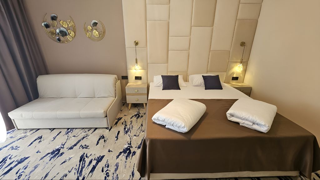 Комплекс из 51 комфортабельных двухэтажных коттеджей расположен на парковой территории 7,5 га., вдали от городской суеты. Здесь, на песчаном берегу, оборудован современный пляж. Берег усыпан мелким песком. Для удобства установлены лежаки и тенты. Ароматы южных роз, соснового бора и морского бриза создают особую атмосферу! Комплекс Volna Sea Village предлагает не просто отдохнуть, но и оздоровить организм благодаря лечебному морскому климату. Мы предлагаем отдых в Анапе по системе "все включено". Пятиразовое питание по системе «шведский стол» 3 основных приема пищи: завтрак с 08:00 до 10:00, обед с 13:00 до 15:00, ужин с 18:00 до 20:00 и 2 промежуточных (дополнительные перекусы). Комплекс расположился на пионерском проспекте рядом с джемете. Это место окружено с одной стороны морем и с другой - сосновым бором. Территория комплекса представляет собой лесопарковую зону, протяжённостью более 7 гектаров. Благодаря этому, отдыхающие могут вдоволь насладиться неспешными прогулкам