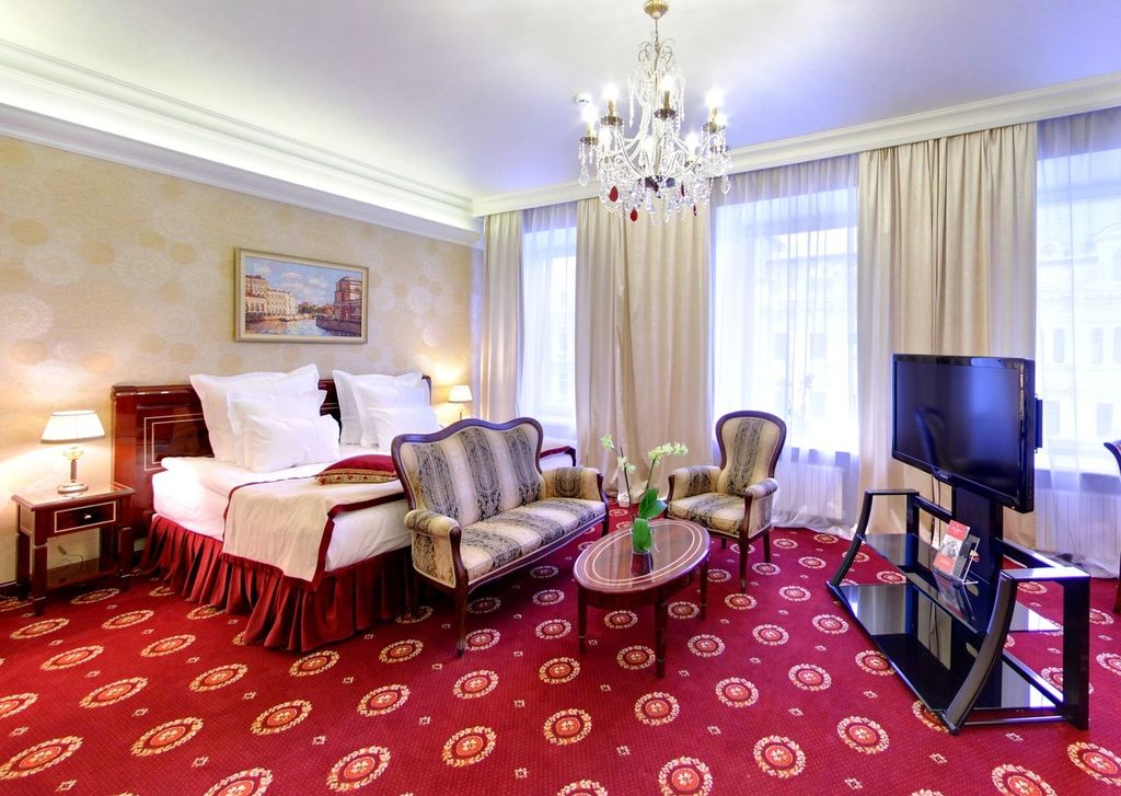 Бутик-отель с 73 видовыми номерами с авторским дизайном интерьеров и топовой локацией на Большой Конюшенной улице в историческом здании 19 в. в самом центре Санкт-Петербурга в 50 м. от Невского проспекта и 600 м. от Эрмитажа. Финалист Russian Hospitality Awards в номинации “Дизайн Отель”. Бесплатная парковка. Завтрак "Шведский стол". Атмосфера элегантной роскоши с современными акцентами в историческом окружении. К услугам гостей 73 номера с индивидуальном авторским дизайном и отличным видом на ул. Большая Конюшенная (боковой вид на Невский проспект), или в зеленых тихий двор на Лютеранскую Церковь. Интерьеры выполнены либо в насыщенной цветовой гамме, либо в строгих классических тонах. По стилю номера похожи, но идентично оформленных нет. Отделка номеров бутик-отеля «Золотой Треугольник» выполнена по проектам трех именитых дизайнеров, победителей европейских арт-фестивалей. Завтрак "Шведский стол" сервируется ежедневно с 7.30 до 11.00 утра в залах на 3 этаже отеля,