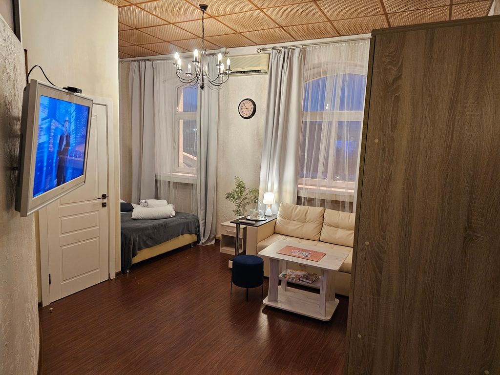 Отель «Апельсин-Центр» удобно расположен в самом центре Москвы в Тверском районе. К услугам гостей круглосуточная стойка регистрации,Wi-Fi на всей территории, чай и кофе бесплатно в неограниченном объеме и доставка еды и напитков в номер. Номера различных категорий - от Эконома (9 кв.м) до Полулюкса (24 кв.м) Во всех номерах собственный санузел с душевыми принадлежностями, полотенцами, тапочками и феном. Все номера оборудованы телевизорами и кондиционерами. Из большинства номеров открывается вид на Пушкинскую площадь. Доступная среда: есть лифт. Дополнительно: прачечная и гладильные услуги. До входа из отеля на 3 станции метро Пушкинская, Чеховская и Тверская - 1 метр. В пешей доступности (до 10 минут пешком) располагаются: Театр мюзикла, театр Ленком, Театр наций, Театр оперетты, Музыкальный театр им. Станиславского. В 15 минутах ходьбы - Красная площадь, Исторический музей и Большой театр. В ближайшем окружении отеля располагаются десятки кафе, баров и ресторанов на любой вкус и