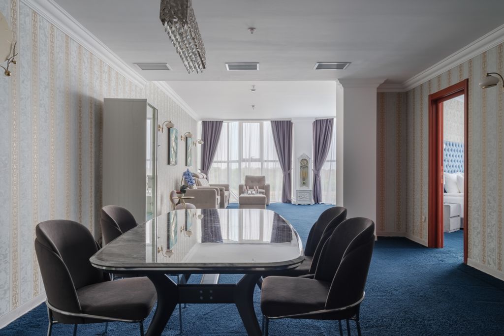 Крупный пятизвездочный отель «Гранд-отель Marins Астрахань» расположен на берегу реки Волга, в центральной части города. В проживание включены посещение спа-комплекса (бассейн, тренажерный зал, финские сауны), услуги прачечной. Стойка регистрации работает в круглосуточном режиме. Если Вы прибыли на личном транспорте, оставьте его на парковке. Каждый из номеров оснащен удобной кроватью, рабочей зоной, телевизором и кондиционером. Индивидуальная ванная комната оборудована феном, есть комплект полотенец, косметических средств и халаты. Ежедневно в номерах проводится уборка. Оставаться на связи с близкими и вовремя решить дела по работе поможет бесперебойный доступ к высокоскоростной сети Wi-Fi, которым можно воспользоваться из любой точки здания. На территории работает несколько ресторанов, где подаются блюда интернациональной кухни. Собственная кондитерская предлагает попробовать нежнейшую выпечку и десерты. Работает бар с напитками. Действует услуга доставки завтрака в номер. В стенах
