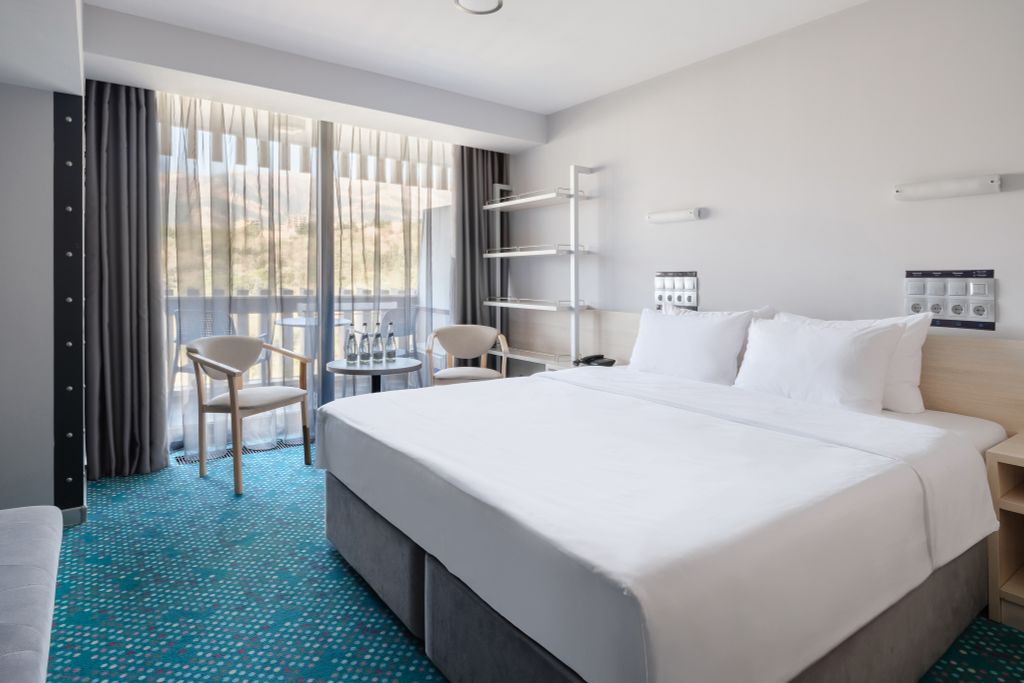 Отель Yalta Intourist – крупнейший курортный центр Крыма, расположенный на берегу Черного моря. Это большой и красочный мир, созданный специально для семейного отдыха, романтических выходных и самого долгожданного отпуска: - Комфортные номера с видом на море, горы и город. - Широкий выбор блюд по программе «все включено» и приготовленных с душой и любовью в 25 ресторанах и барах отеля. - Крупнейший в Крыму бассейн с подогреваемой морской водой, аквапарк, детский бассейн с водными аттракционами, бассейны для прыжков в воду и панорамный с баром. - Центр омоложения лица и тела, первый в Крыму центр грязеомоложения Сакской грязью, центр массажа и другие спа-услуги. - Анимационные представления для детей и взрослых. - Воронцовские бани и сауны. - Современные спортивные площадки: футбол, волейбол, большой теннис, йога, настольный теннис. - Единственный в Крыму фитнес-зал с тренажерами Life-fitness, из окон которого открывается панорамный вид на море и горы. - В зоопарке «Планета обезьян и д