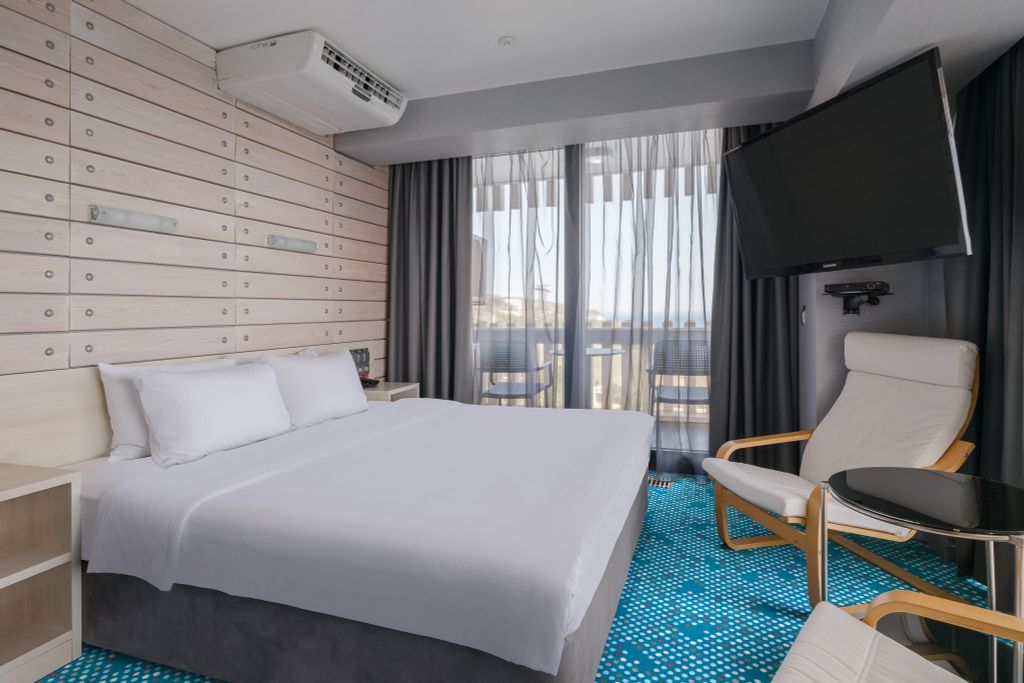Отель Yalta Intourist – крупнейший курортный центр Крыма, расположенный на берегу Черного моря. Это большой и красочный мир, созданный специально для семейного отдыха, романтических выходных и самого долгожданного отпуска: - Комфортные номера с видом на море, горы и город. - Широкий выбор блюд по программе «все включено» и приготовленных с душой и любовью в 25 ресторанах и барах отеля. - Крупнейший в Крыму бассейн с подогреваемой морской водой, аквапарк, детский бассейн с водными аттракционами, бассейны для прыжков в воду и панорамный с баром. - Центр омоложения лица и тела, первый в Крыму центр грязеомоложения Сакской грязью, центр массажа и другие спа-услуги. - Анимационные представления для детей и взрослых. - Воронцовские бани и сауны. - Современные спортивные площадки: футбол, волейбол, большой теннис, йога, настольный теннис. - Единственный в Крыму фитнес-зал с тренажерами Life-fitness, из окон которого открывается панорамный вид на море и горы. - В зоопарке «Планета обезьян и д