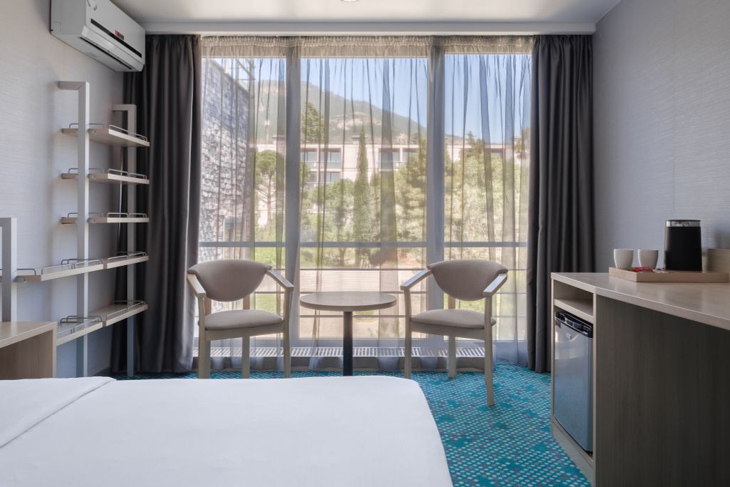 Отель Yalta Intourist – крупнейший курортный центр Крыма, расположенный на берегу Черного моря. Это большой и красочный мир, созданный специально для семейного отдыха, романтических выходных и самого долгожданного отпуска: - Комфортные номера с видом на море, горы и город. - Широкий выбор блюд по программе «все включено» и приготовленных с душой и любовью в 25 ресторанах и барах отеля. - Крупнейший в Крыму бассейн с подогреваемой морской водой, аквапарк, детский бассейн с водными аттракционами, бассейны для прыжков в воду и панорамный с баром. - Центр омоложения лица и тела, первый в Крыму центр грязеомоложения Сакской грязью, центр массажа и другие спа-услуги. - Анимационные представления для детей и взрослых. - Воронцовские бани и сауны. - Современные спортивные площадки: футбол, волейбол, большой теннис, йога, настольный теннис. - Единственный в Крыму фитнес-зал с тренажерами Life-fitness, из окон которого открывается панорамный вид на море и горы. - В зоопарке «Планета обезьян и д
